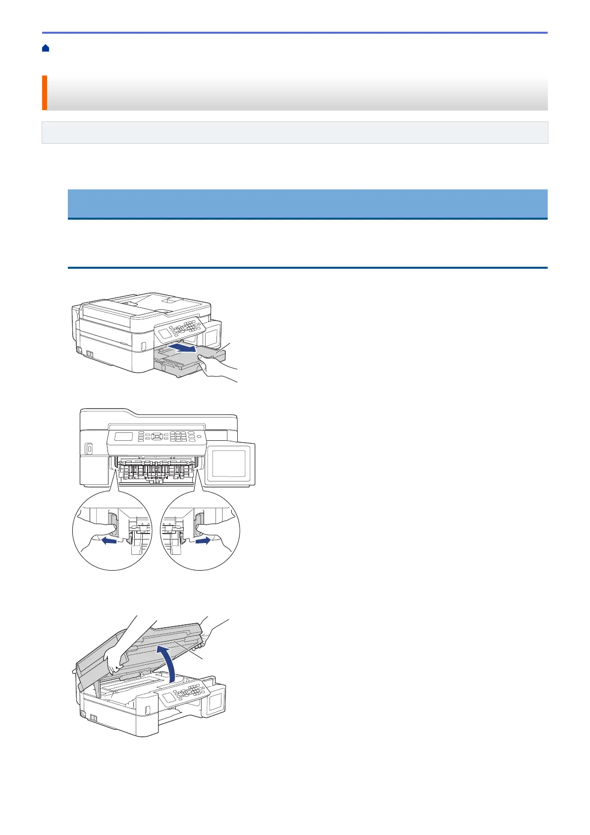 Home > Troubleshooting > Printer Jam or Paper Jam > Paper is Jammed Inside and in the Front of the