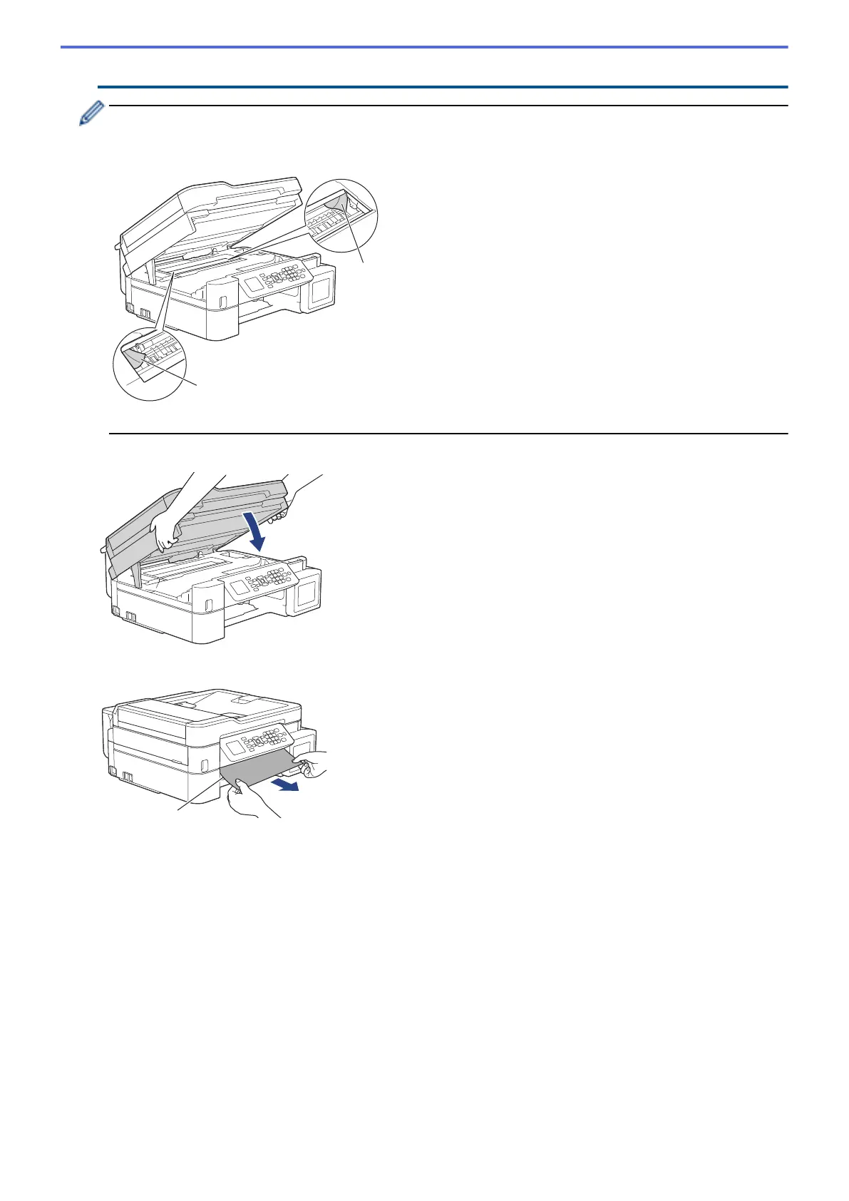 take out any paper remaining in this area. Make sure scraps of paper are not left in the corners of the
