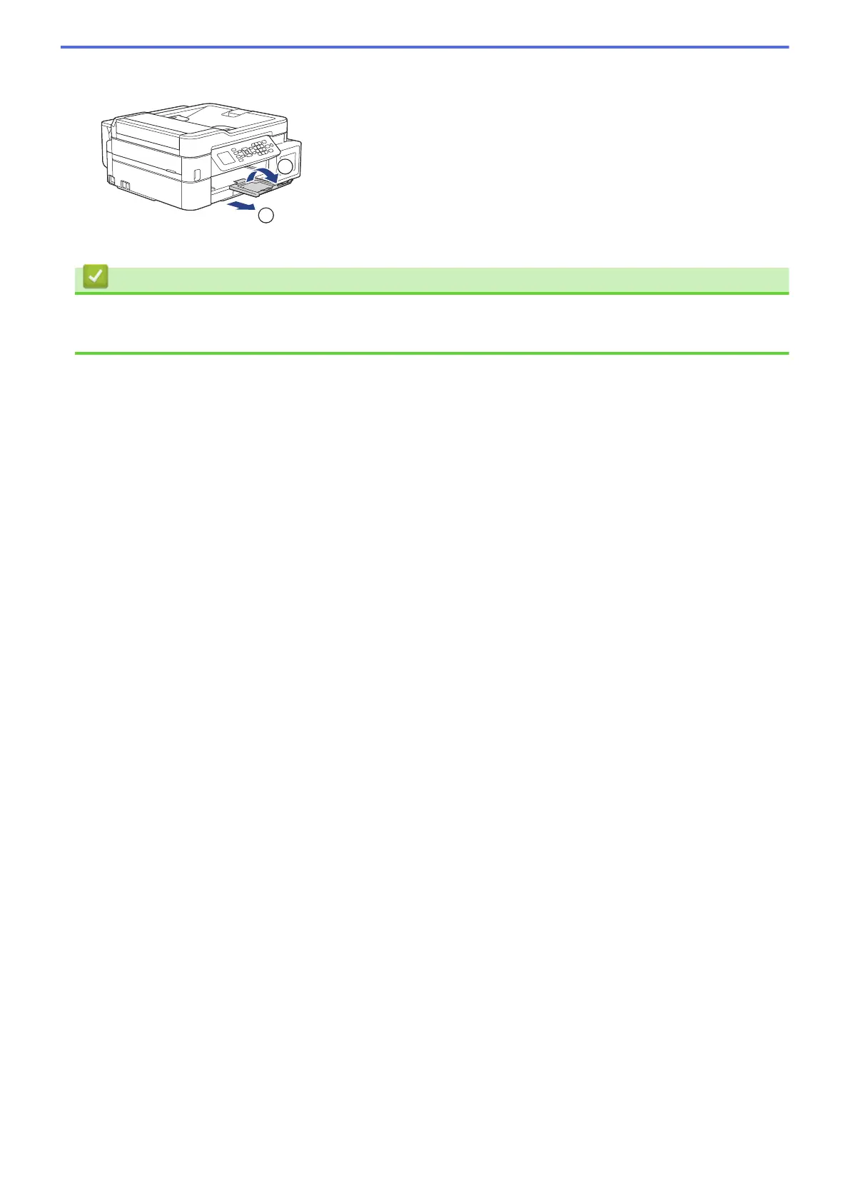 6. While holding the paper tray in the machine, pull out the paper support (1) until it locks into place, and then