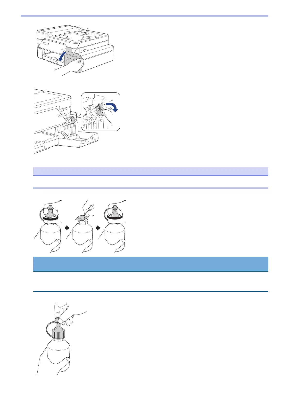 2. Pull the tab downwards to open the cap of the ink tank for the colour you want to refill.