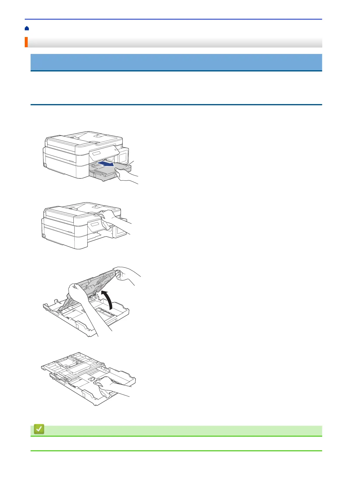 4. Lift the output paper tray cover and remove anything that is stuck inside the paper tray.