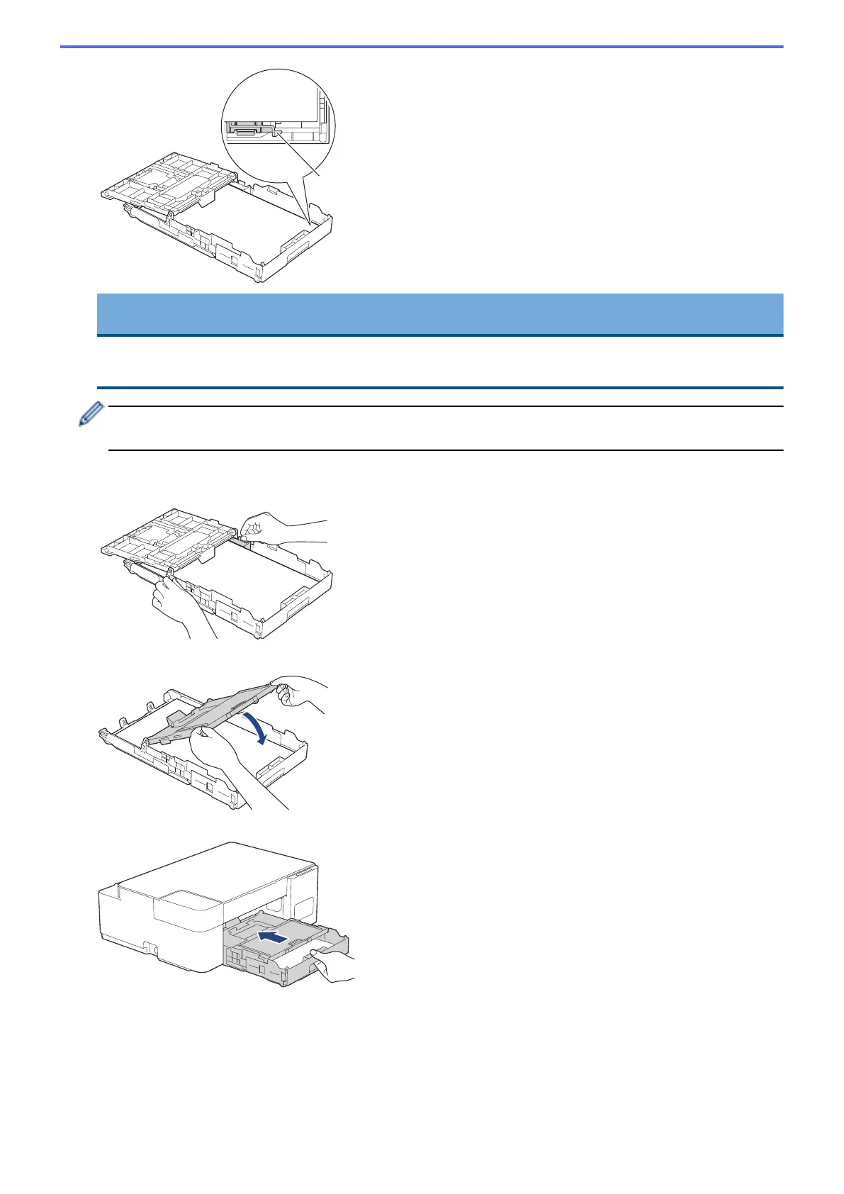 Be careful not to push the paper in too far; it may lift at the back of the tray and cause paper feed