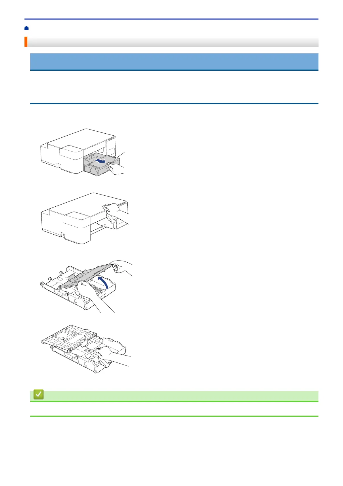 5. Wipe the inside and the outside of the paper tray with a dry, lint-free cloth to remove dust.