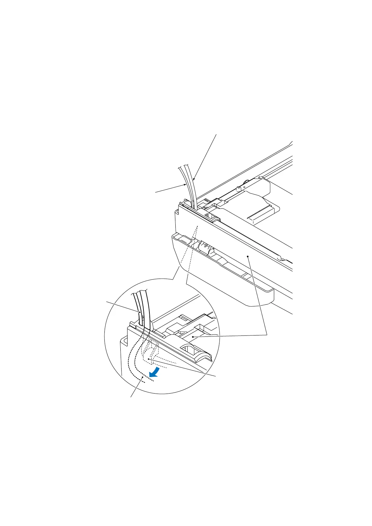 and rear sensor harnesses*) from the cable guide in the rear corner of the scanner cover as