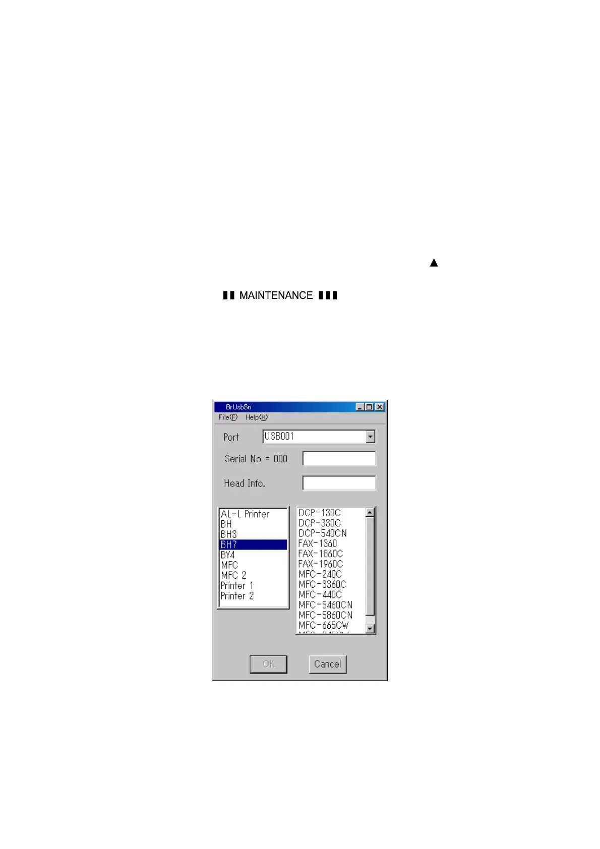 (6) On the PC, run the ID/head property setup utility (brusbsn.exe) in the folder created. The
