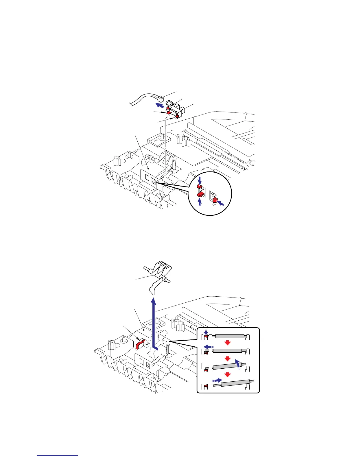 (1) Turn the Paper feed chute ASSY upside down. Release the Hooks of the Photo interrupter