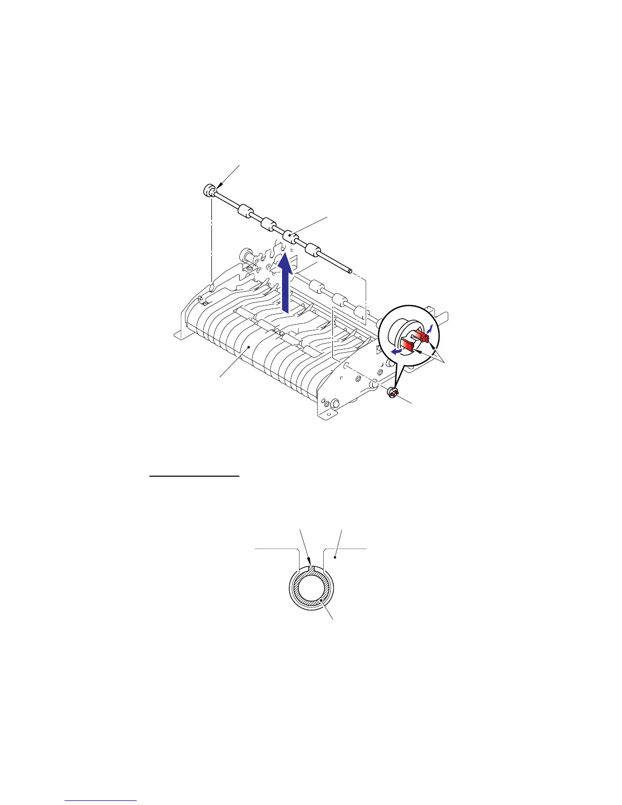 (2) Remove the Bushing from the ADF chute ASSY, and remove the LF roller 2 ASSY from