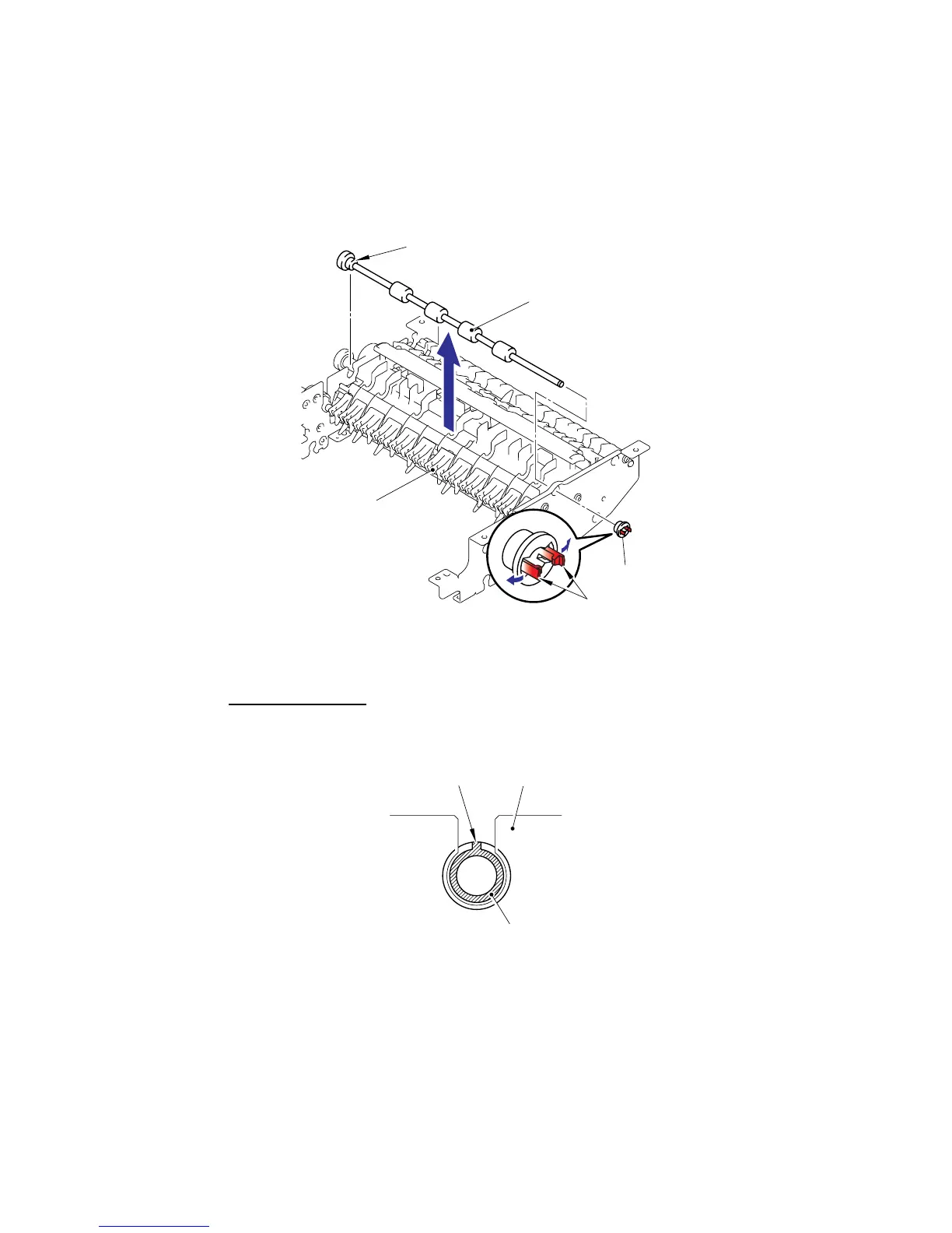 (2) Remove the Bushing from the ADF chute ASSY, and remove the LF roller 4 ASSY from