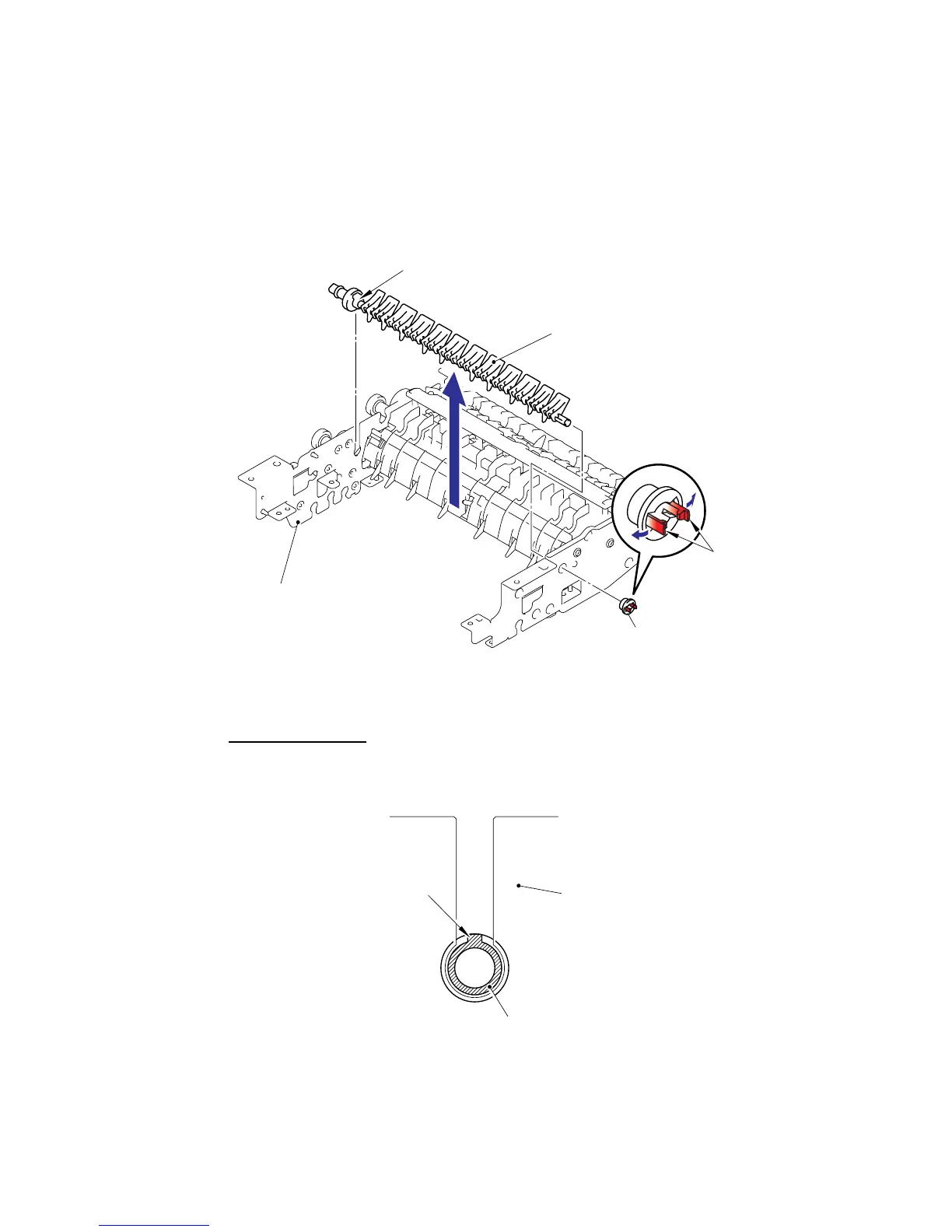 (2) Remove the Bushing from the ADF chute ASSY, and remove the Flap A ASSY or Flap A