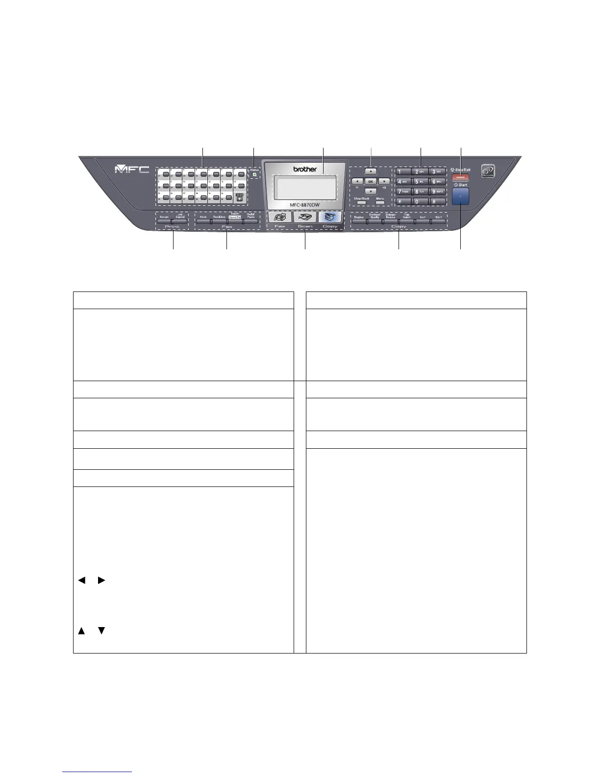 MFC-8460N, MFC-8860DN and MFC-8870DW have similar control keys.