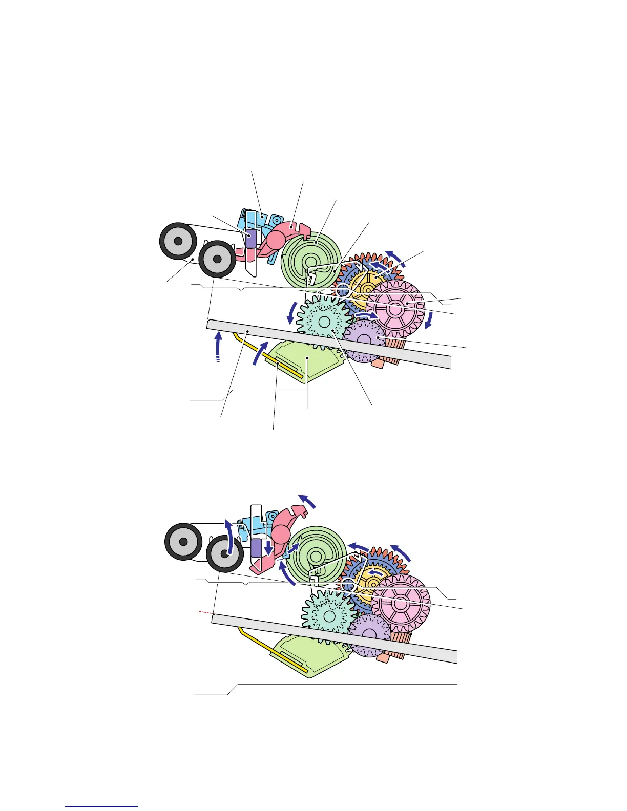 The plate ASSY in the paper tray is pushed up with the motor drive and not with the spring in