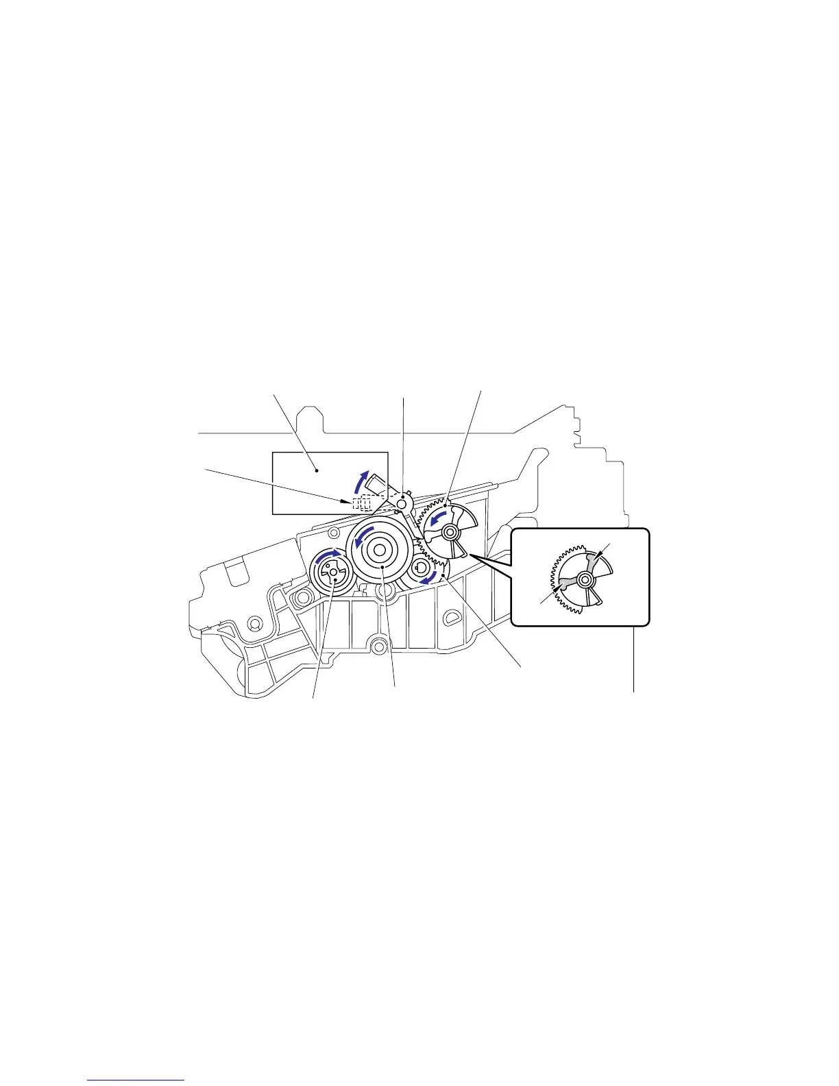 (1) The motor drive is transmitted to the gear (4) through a few gears.