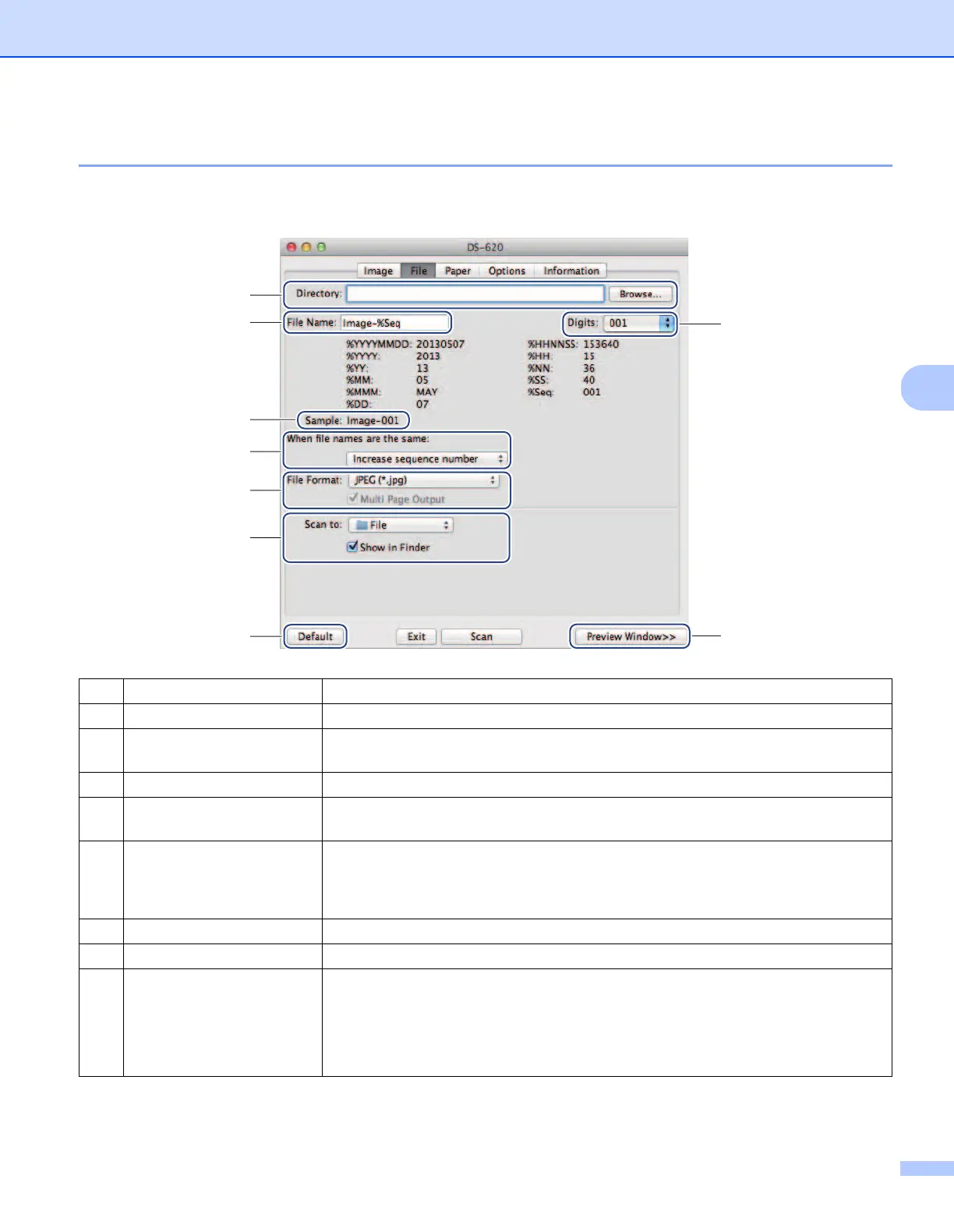 Click the File tab to configure the settings related to the file name and the directory where you want to save