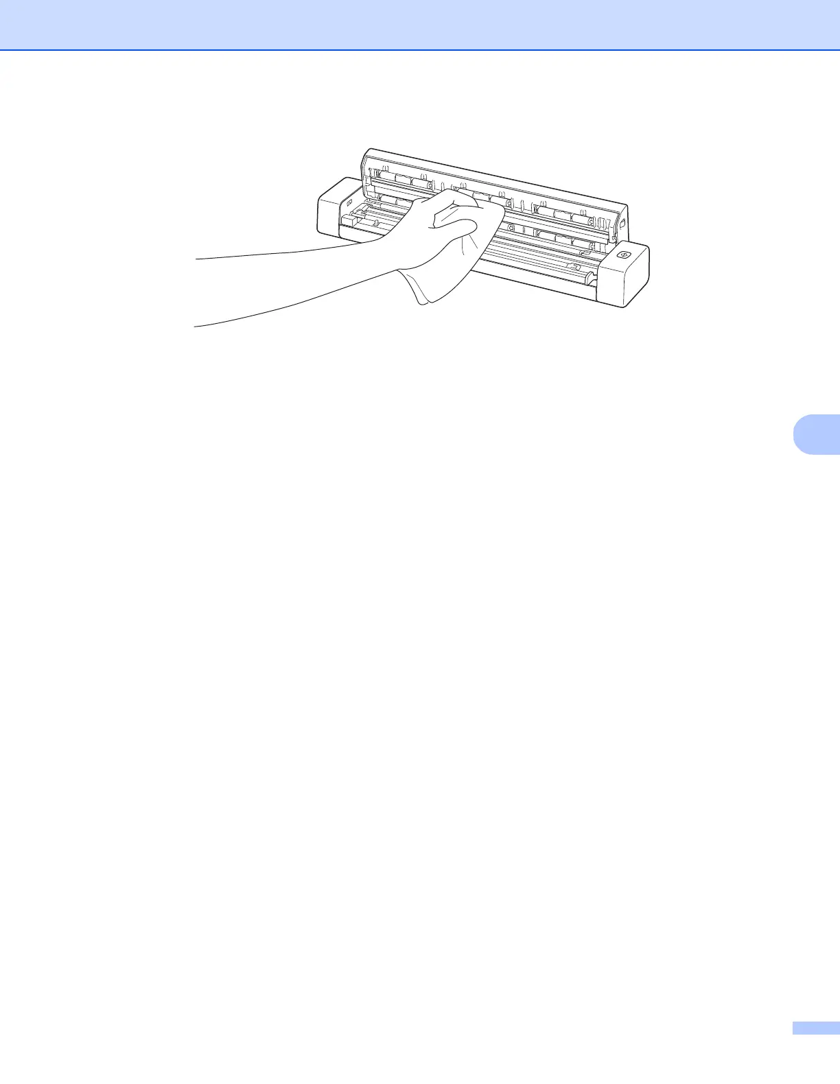 3 Gently wipe the scanning glass strip and feed rollers with the supplied cleaning cloth.