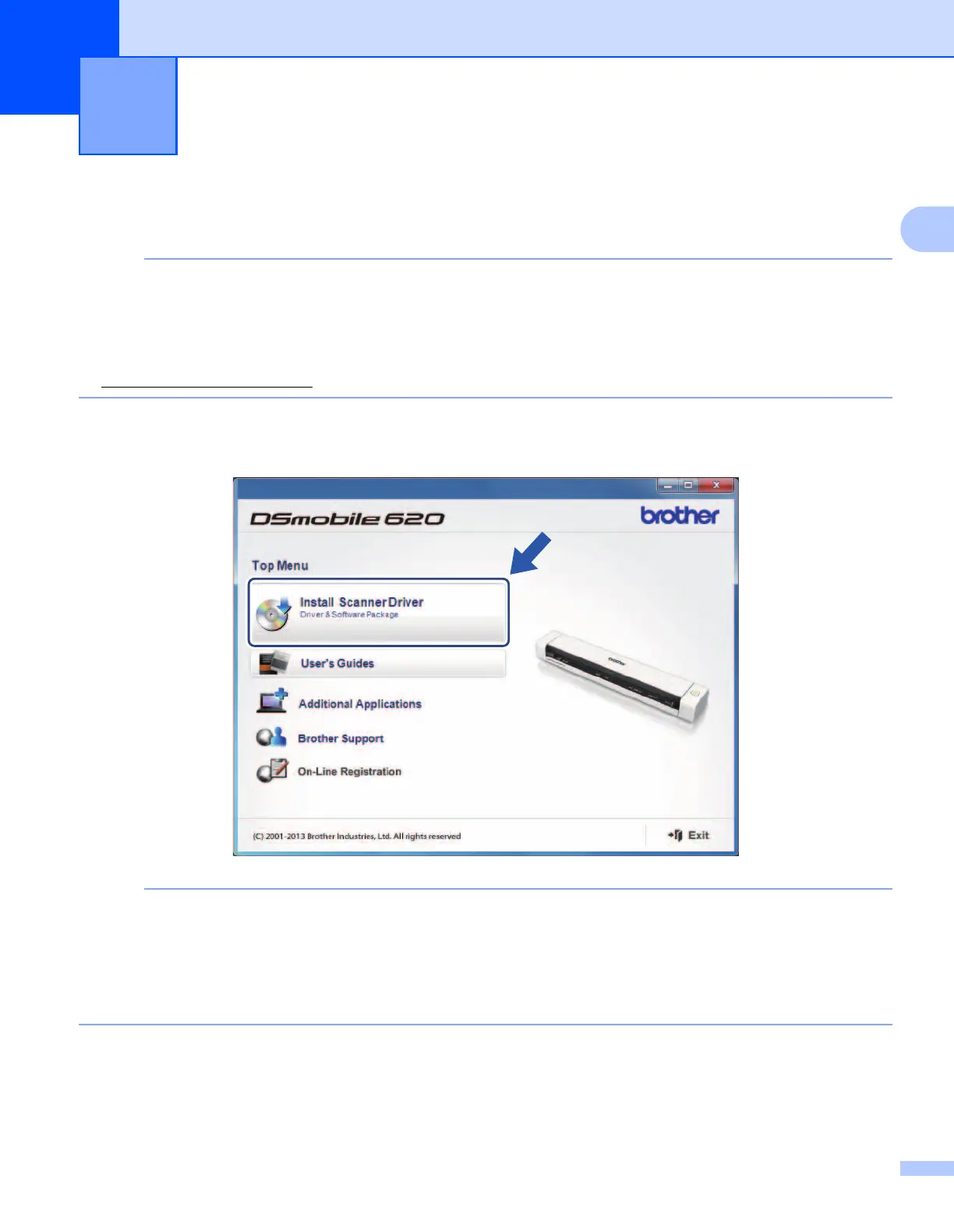 2 When the Setup screen appears, click Install Scanner Driver and follow the on-screen instructions.