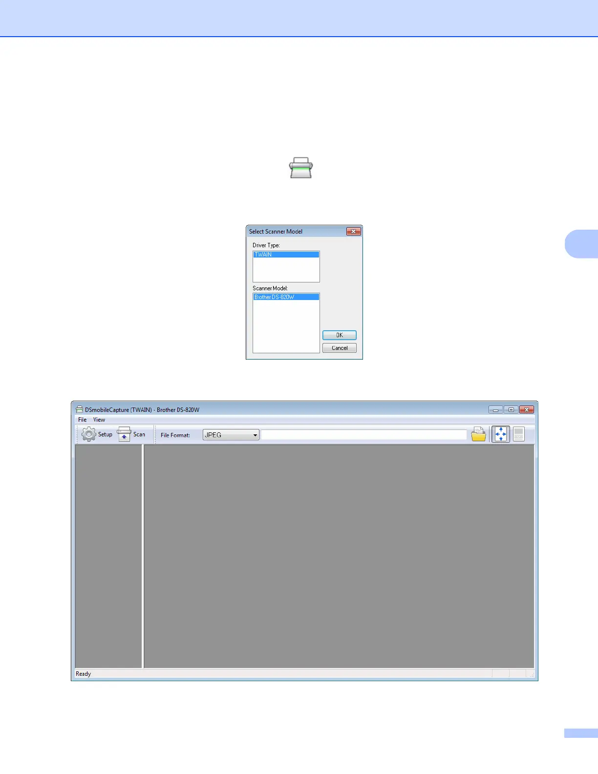 c The Select Scanner Model dialog box appears. Select TWAIN under Driver Type and select Brother