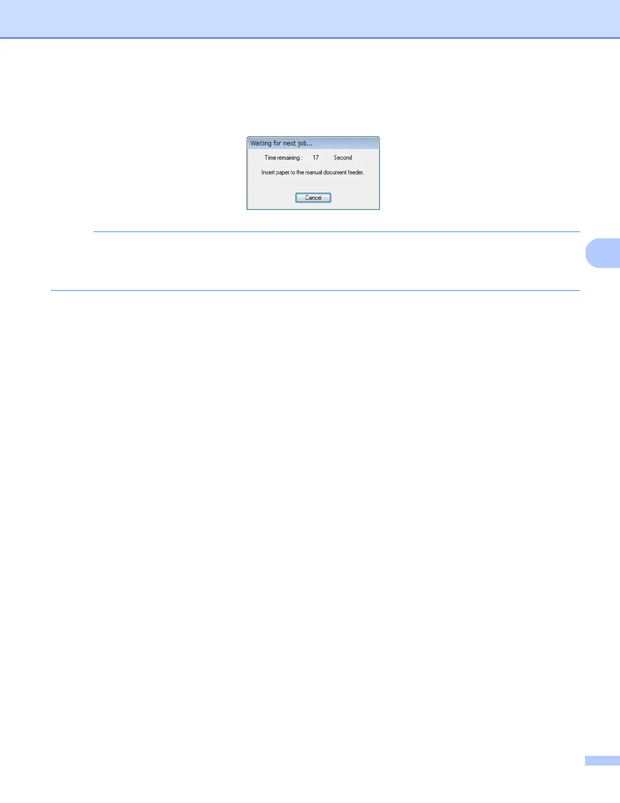 To stop the continuous scanning, click Cancel on Waiting for next job... screen.
