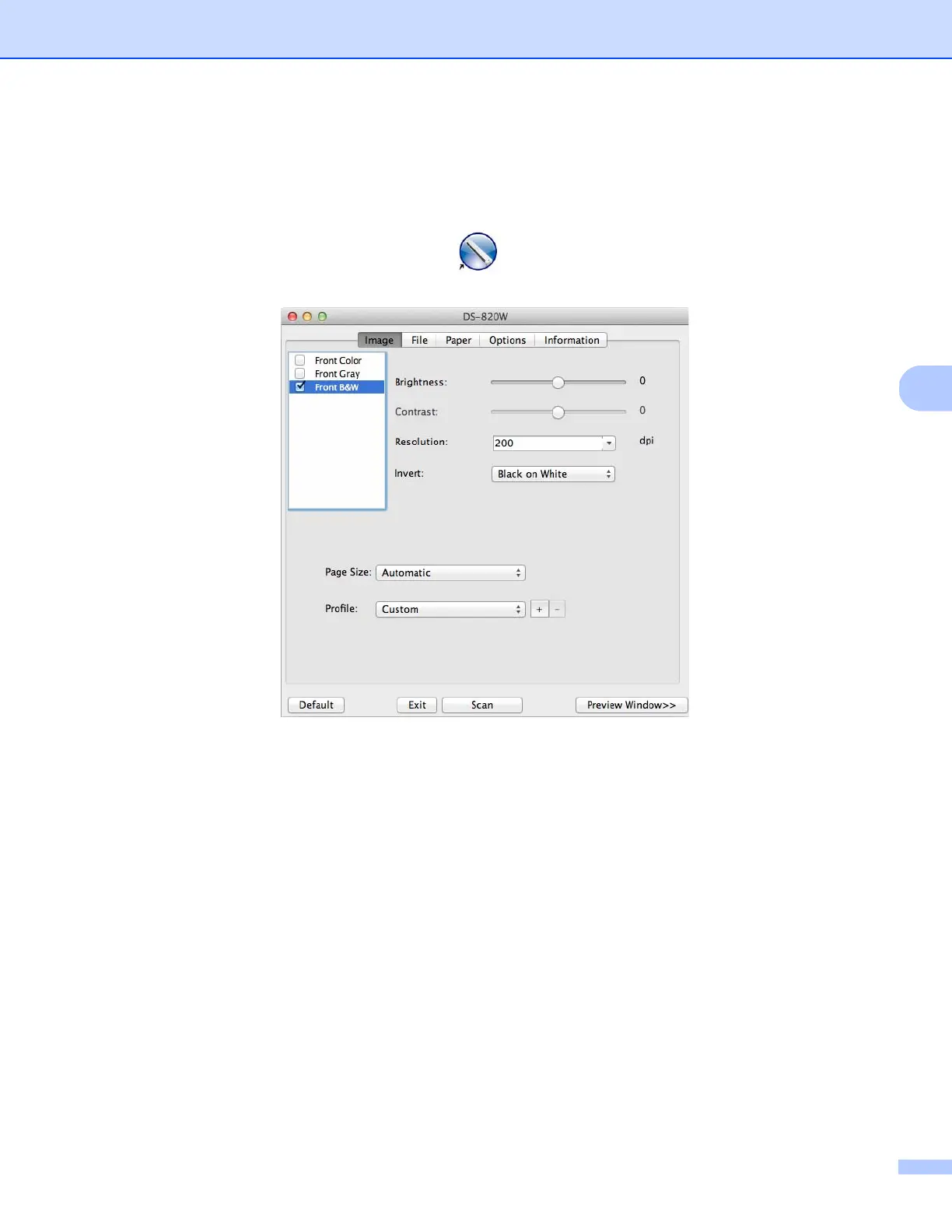 f Click Scan in the DSmobileCapture screen or press the scanner’s Start / OK button when the document