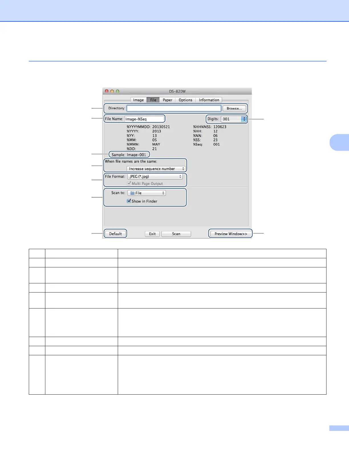 Click the File tab to configure the settings related to the file name and the directory where you want to save