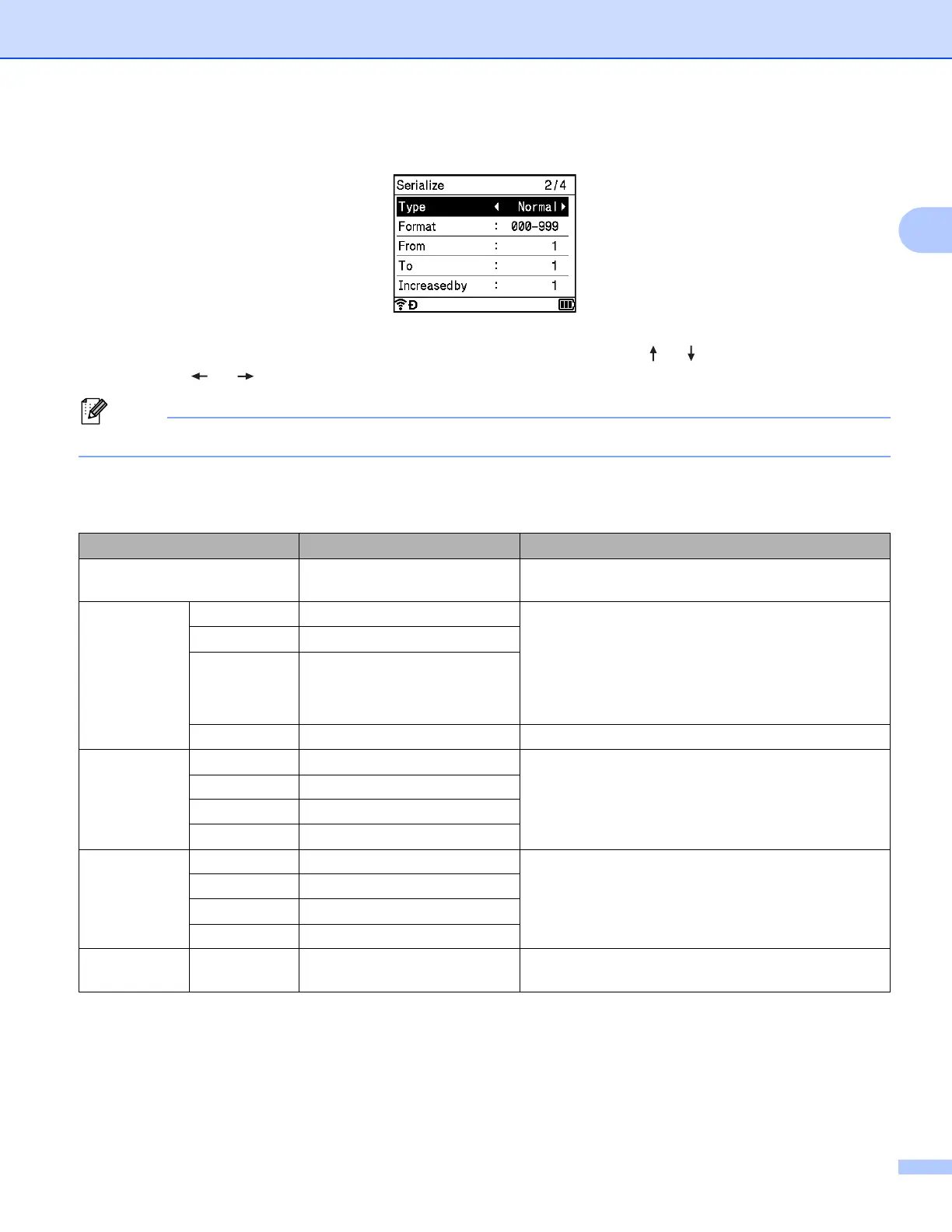 c Select [Type], [Format], [From], [To] and [Increased by] using the or key, and set the values