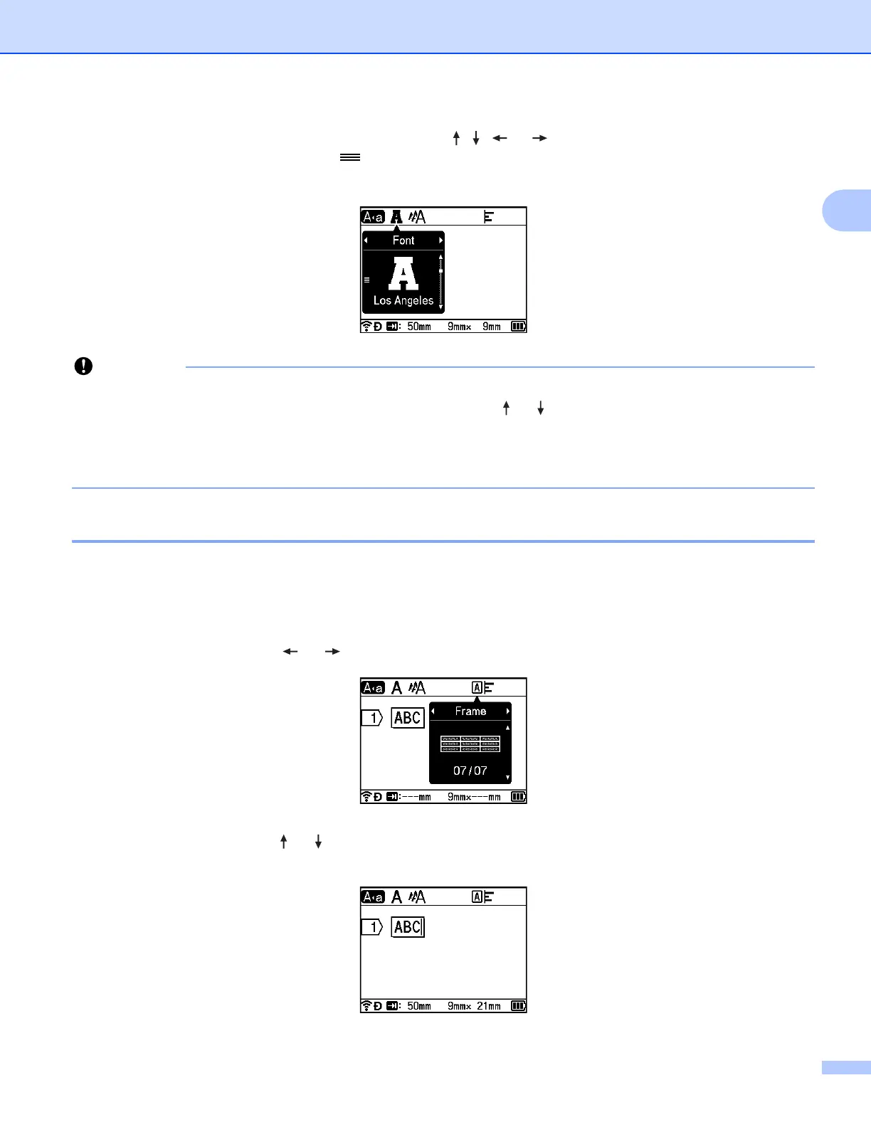 You can select the frame of the label using the Format key. Selectable “Frames” are listed in the Appendix.