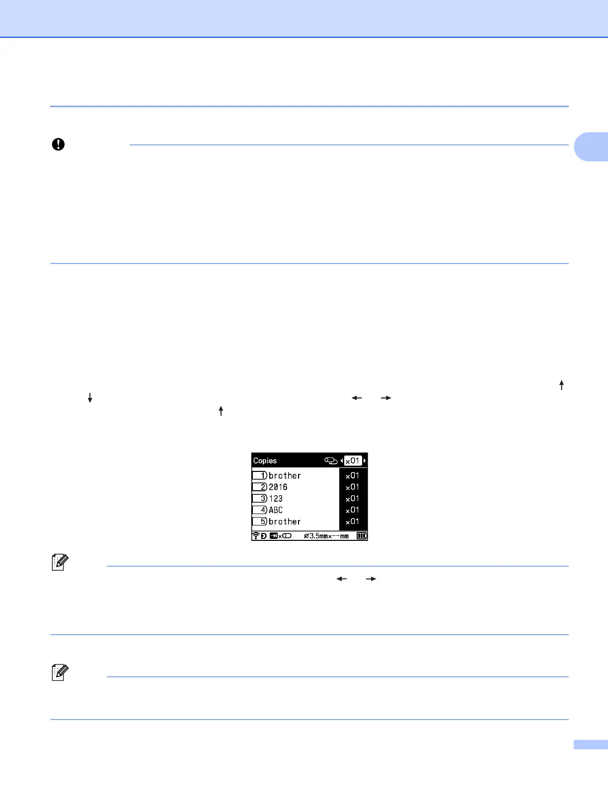 • To set the same number of copies for all pages, press the Tab key in the tube creation screen to set the