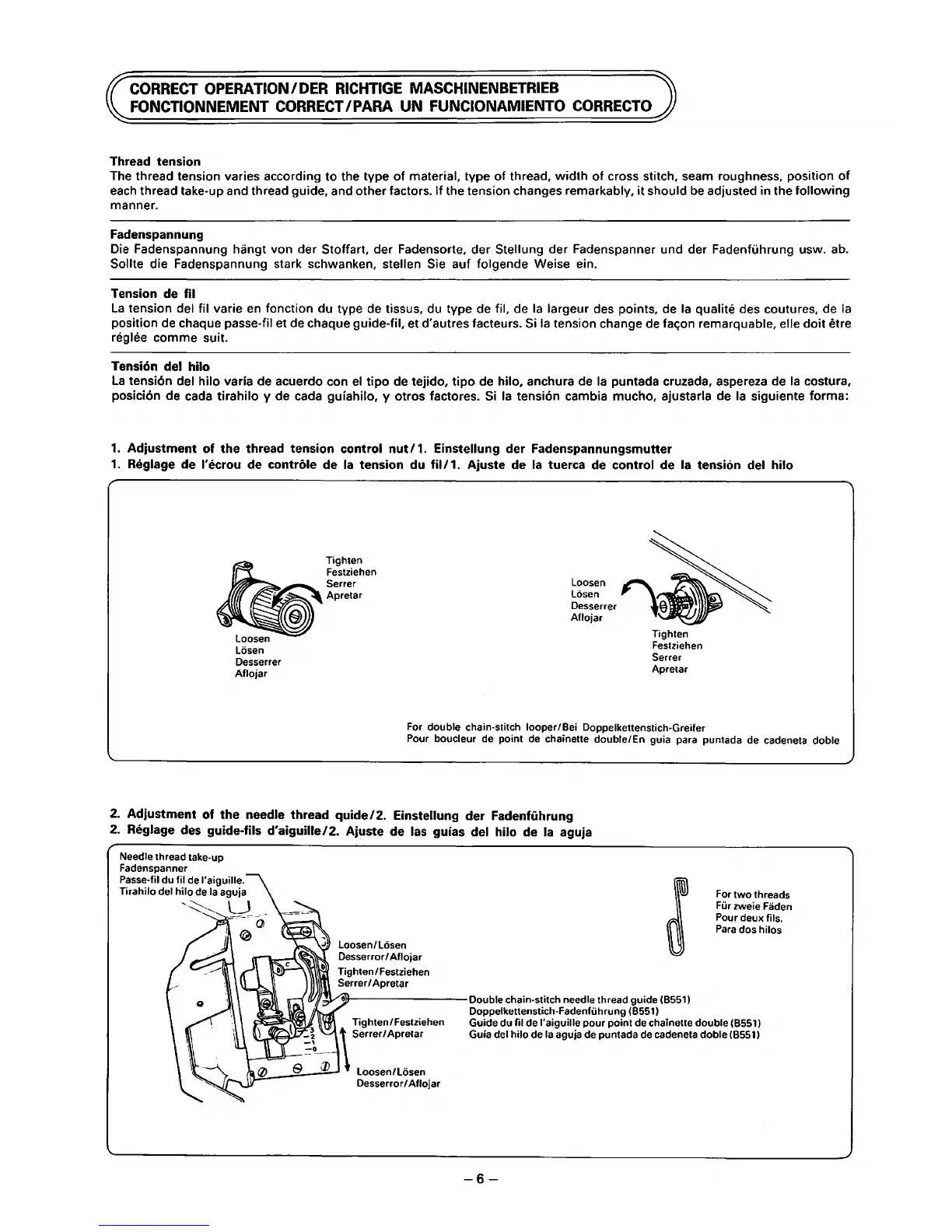 hangt von der Stoffart, der Fadensorte, der Stellung der Fadenspanner und der Fadenfl.ihrung usw. ab.