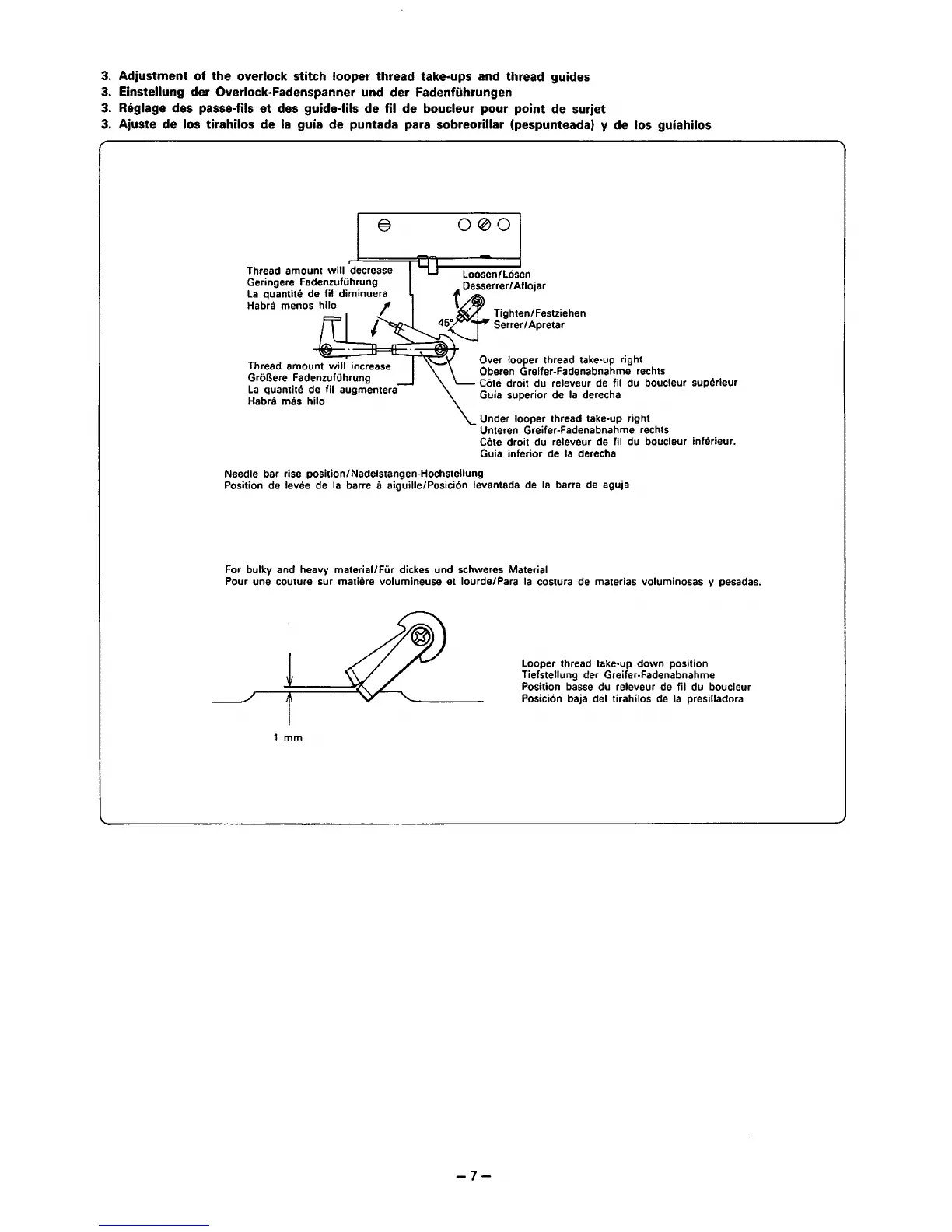 Adjustment of the overlock stitch looper thread take-ups and thread guides