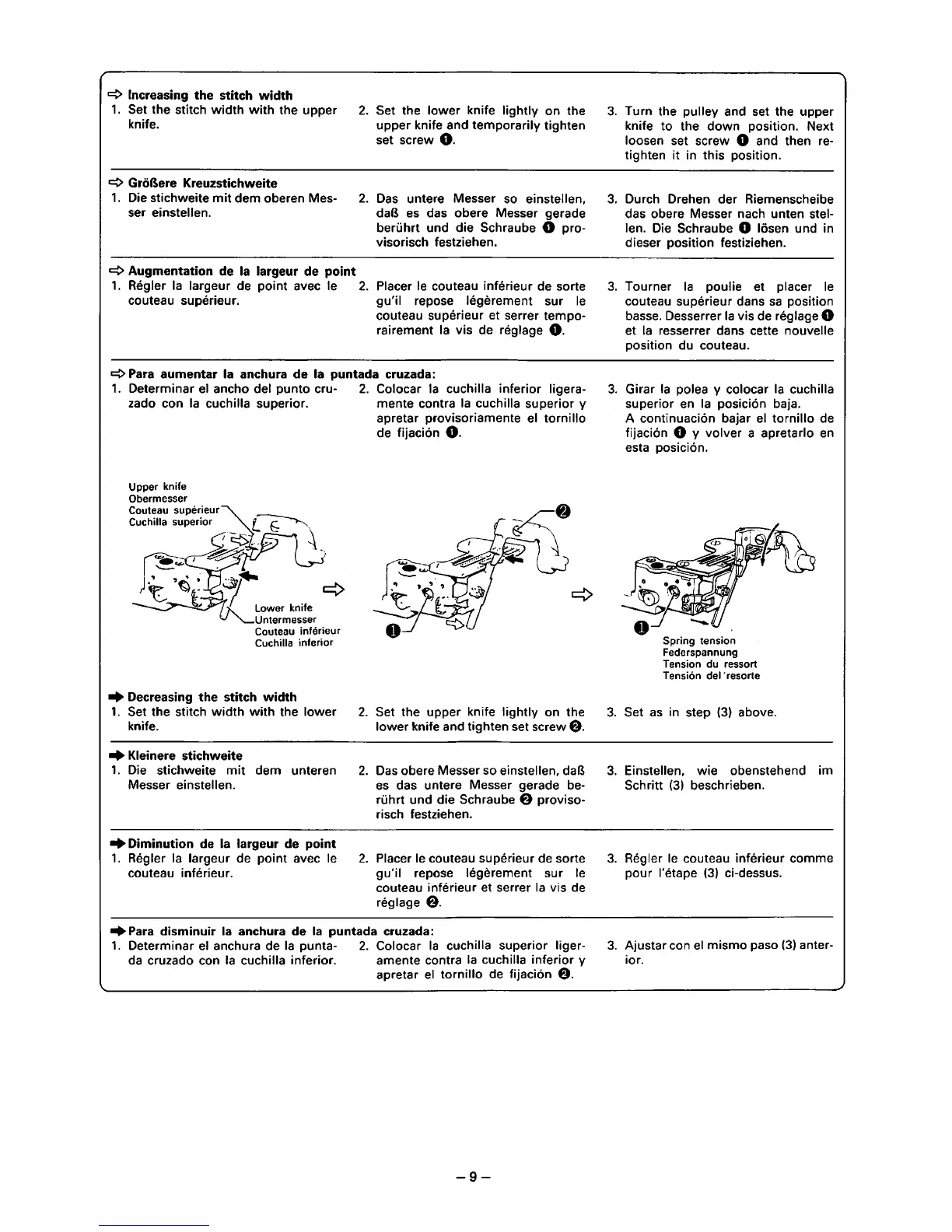 Das obere Messer so einstellen, daB