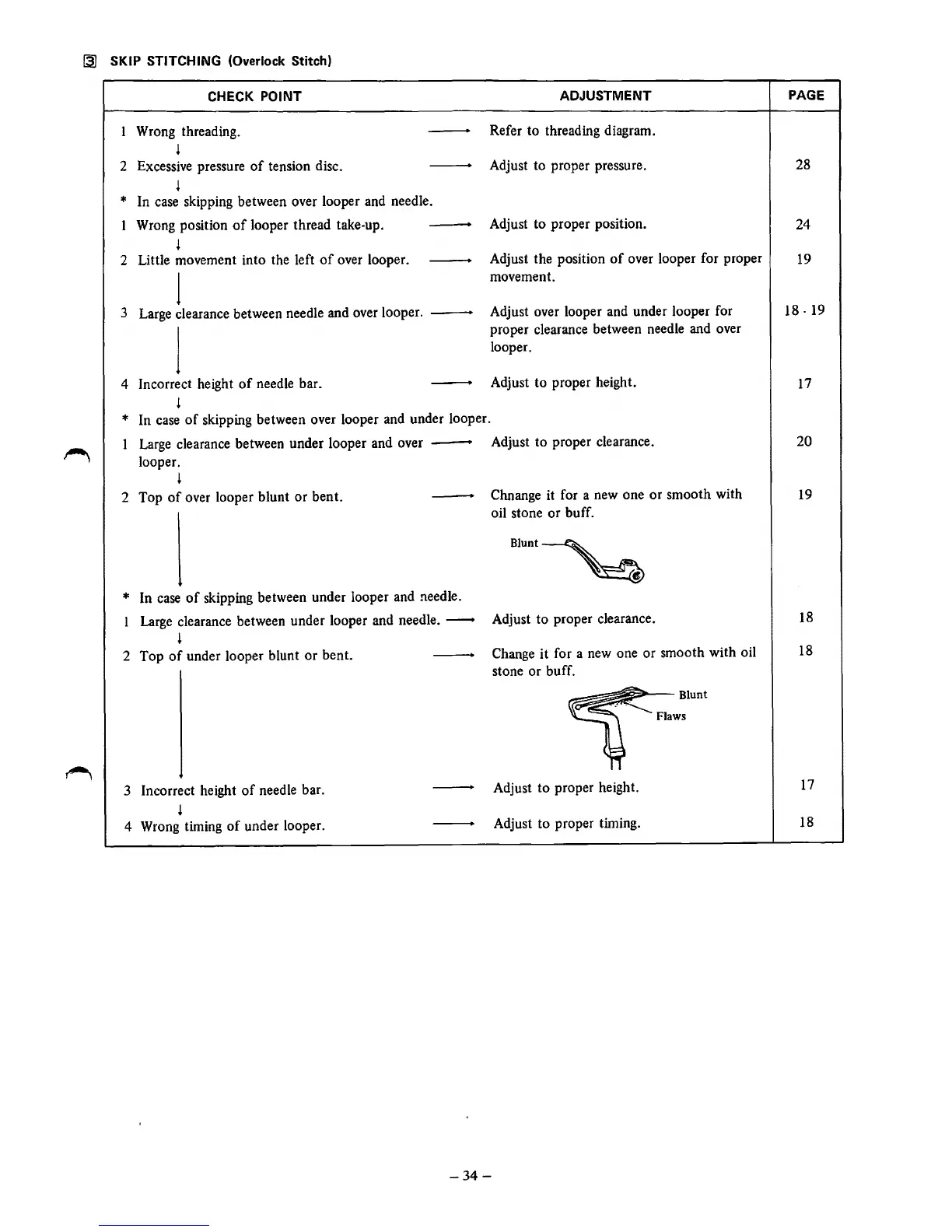 over looper blunt or bent.