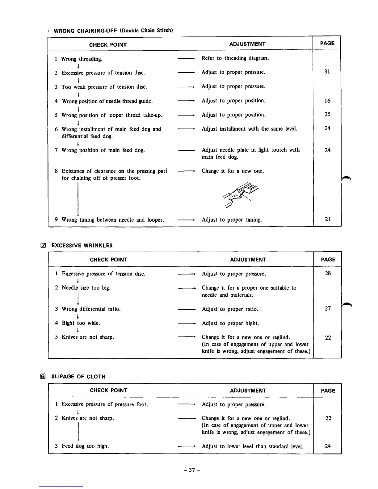 9 Wrong timing between needle and looper.