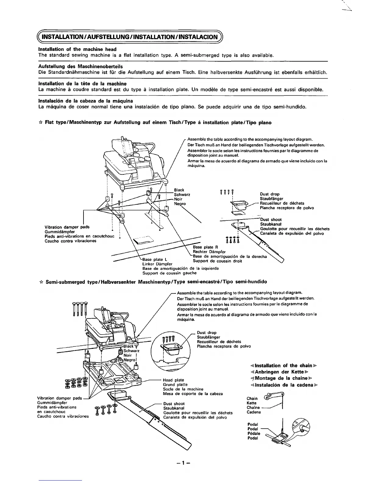 machine a coudre standard est du type a installation plate. Un modele de type semi-encastre est aussi disponible.