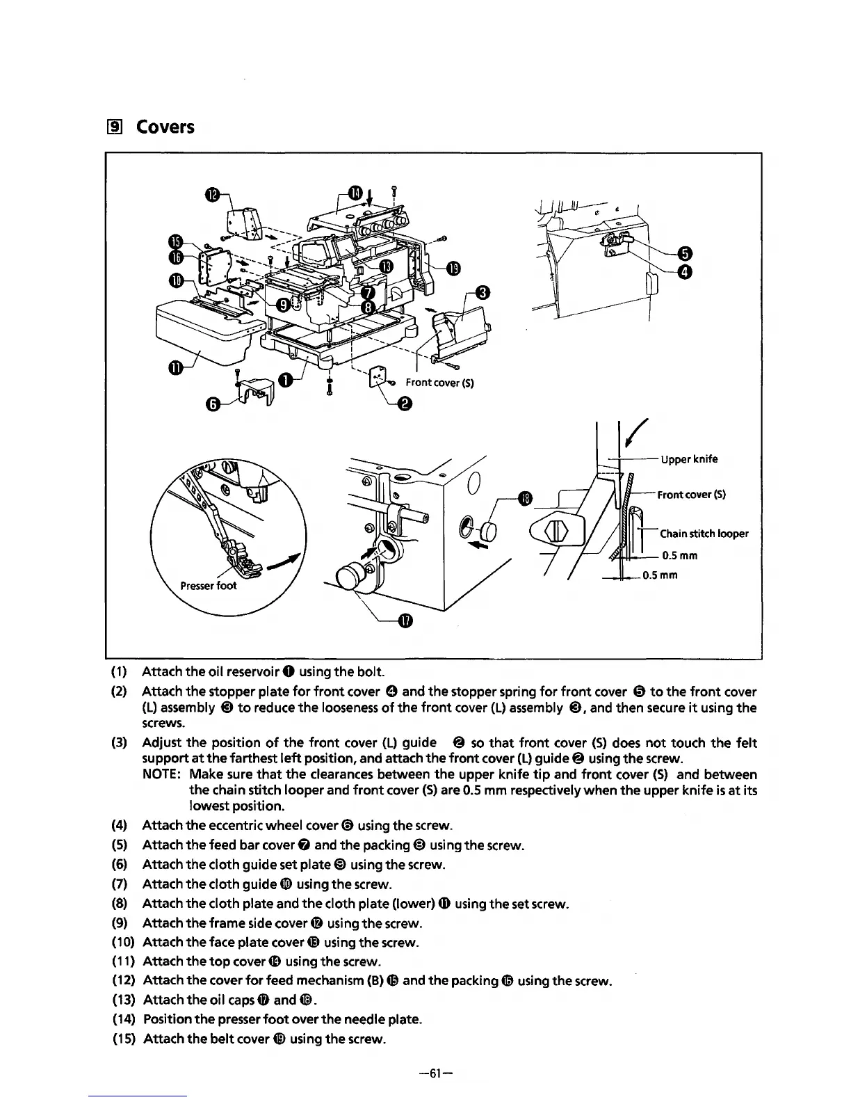 Attach the cloth guide set plate@) using the screw.