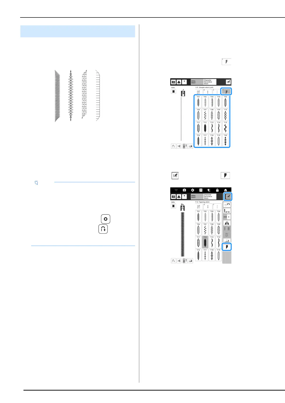 stitching when stitch tapering function is on.