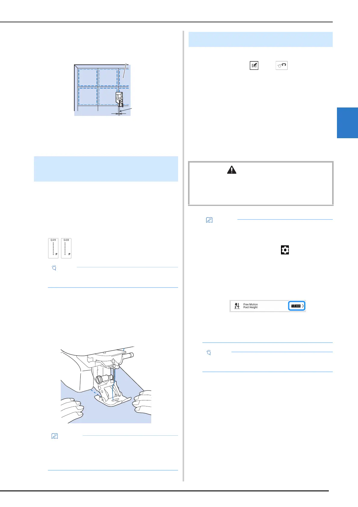 quilting foot is raised to the height specified in