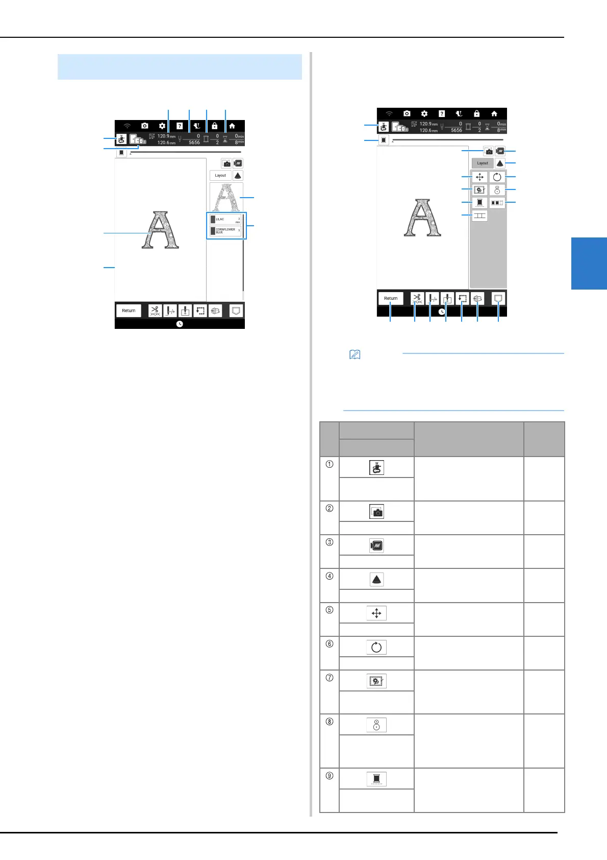 i Shows the part of the embroidery that will be