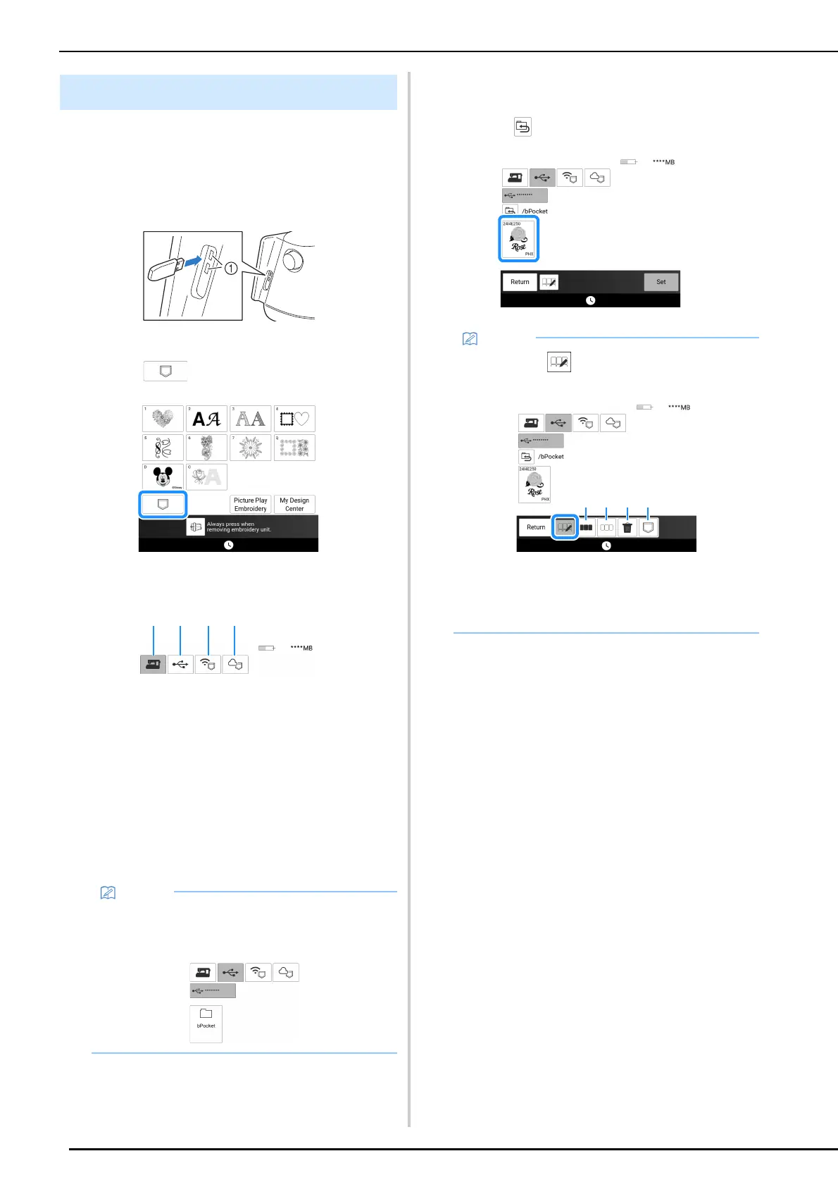 • If the embroidery pattern to be retrieved is in a