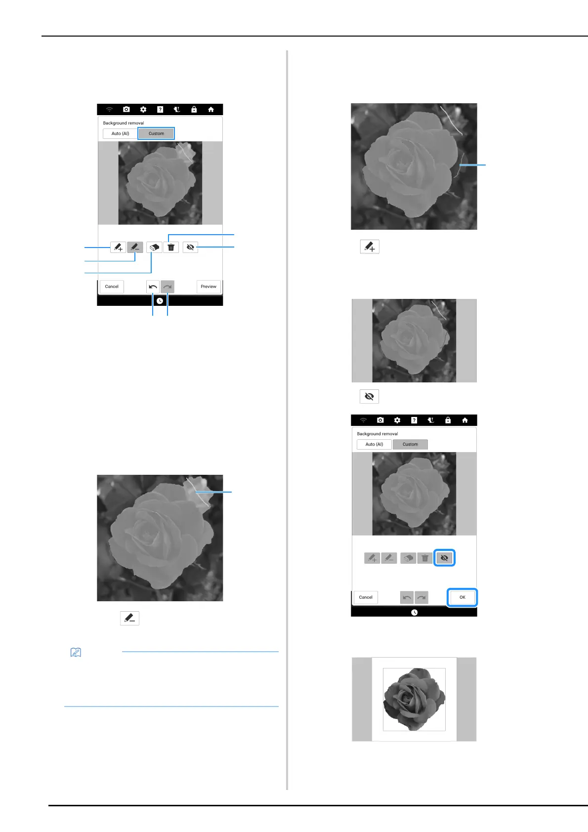 • When selecting areas to be added to or