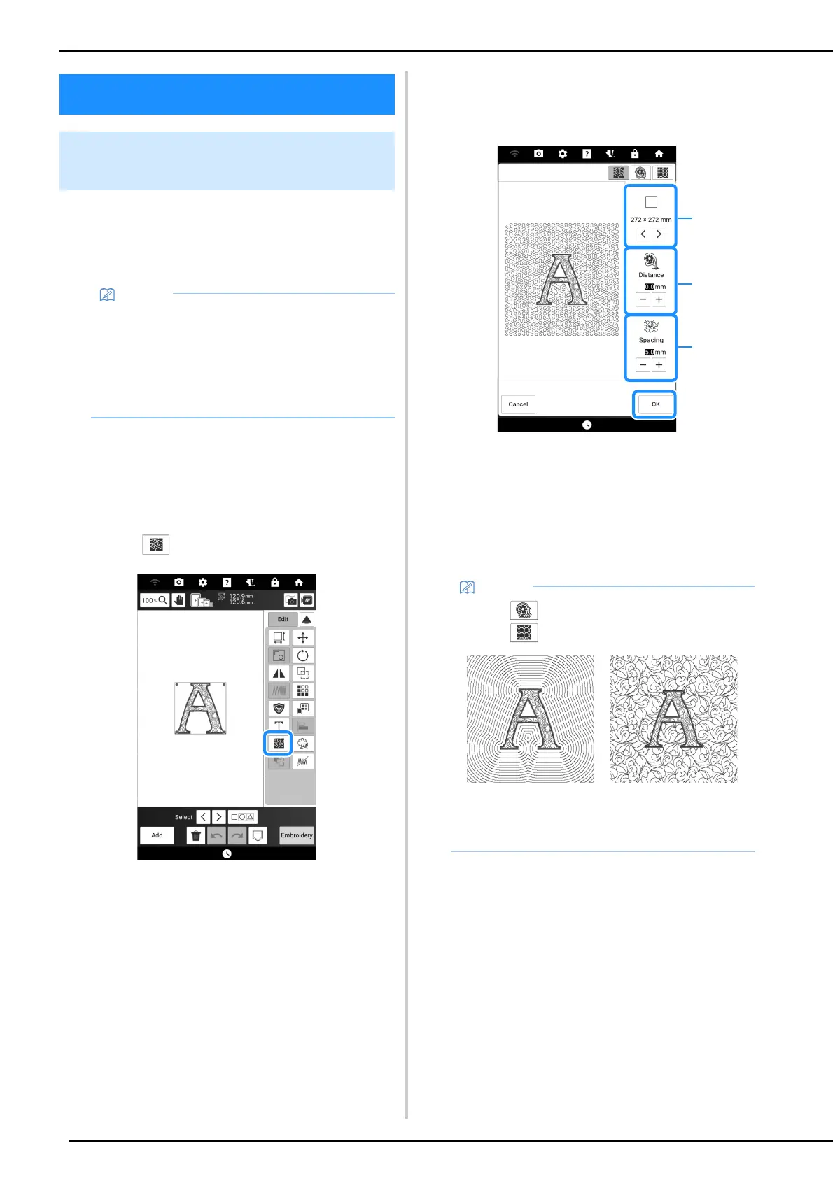 • Touch to create an echo quilting pattern.