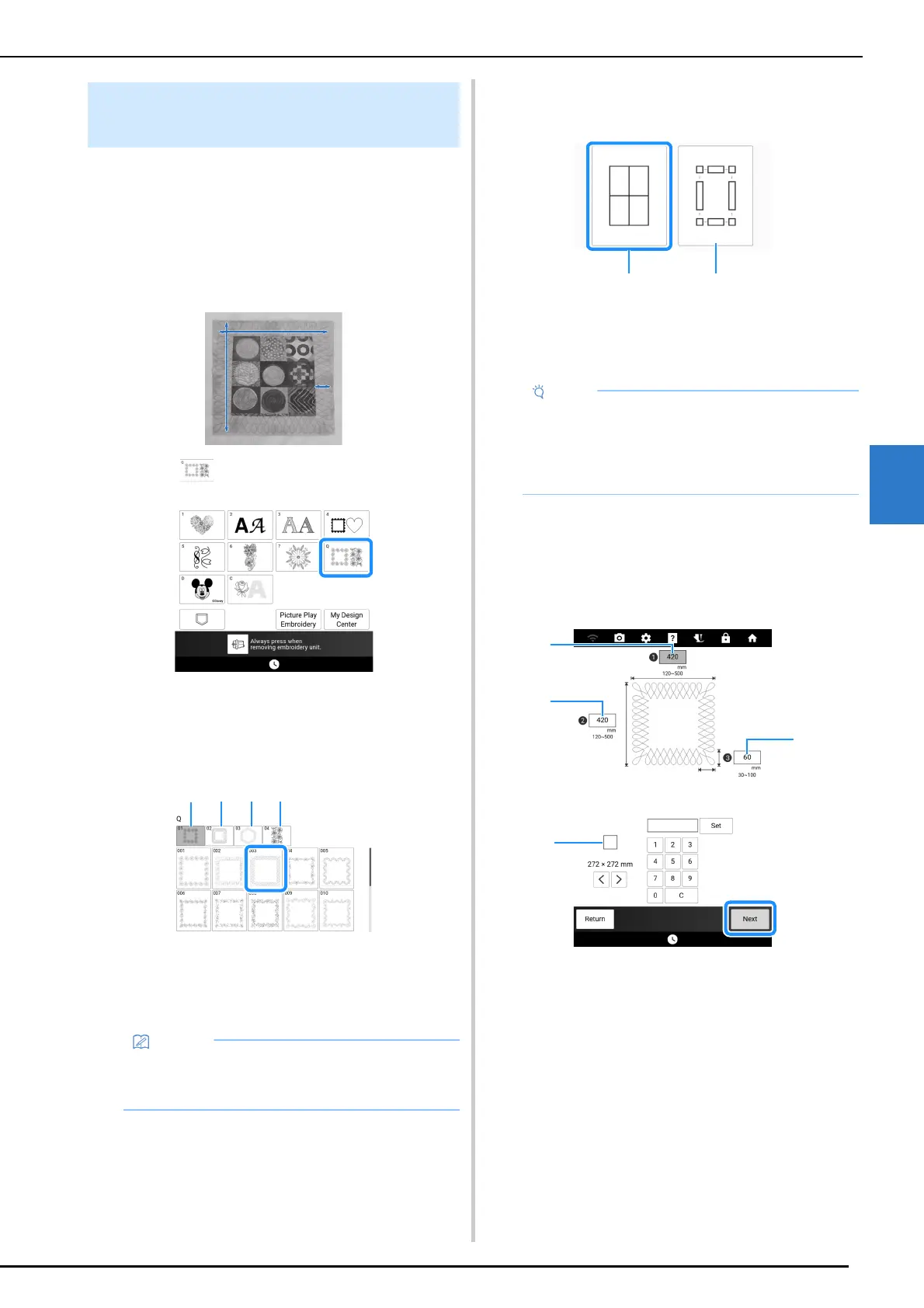 For details, refer to “Embroidering Quilting Border
