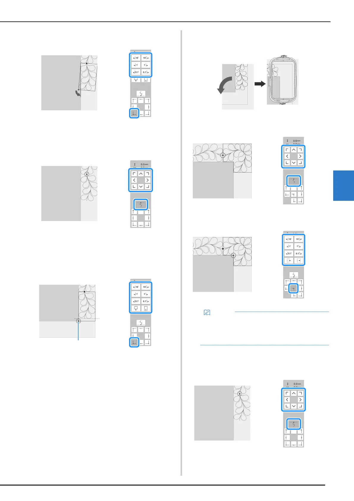 Rotate the quilt 90 degrees counterclockwise, rehoop it, and
