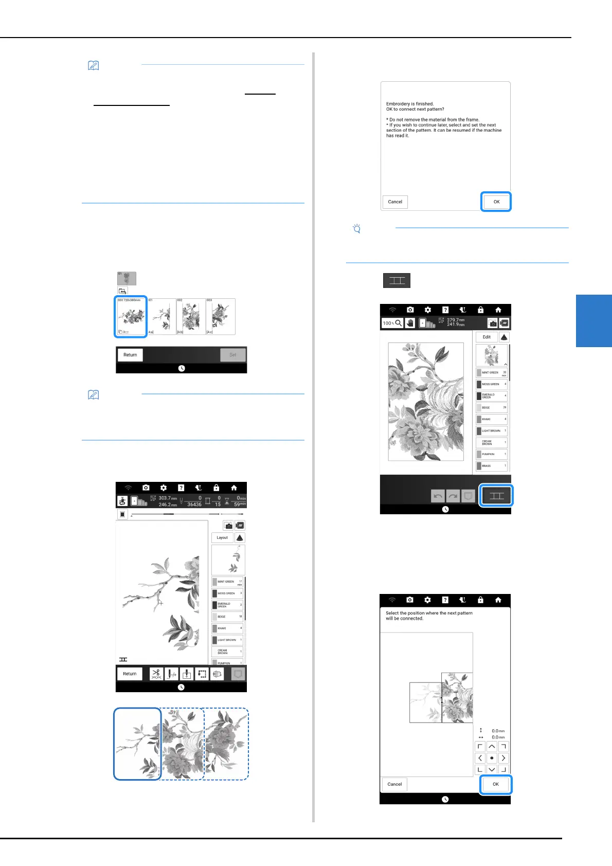 • To embroider split embroidery patterns