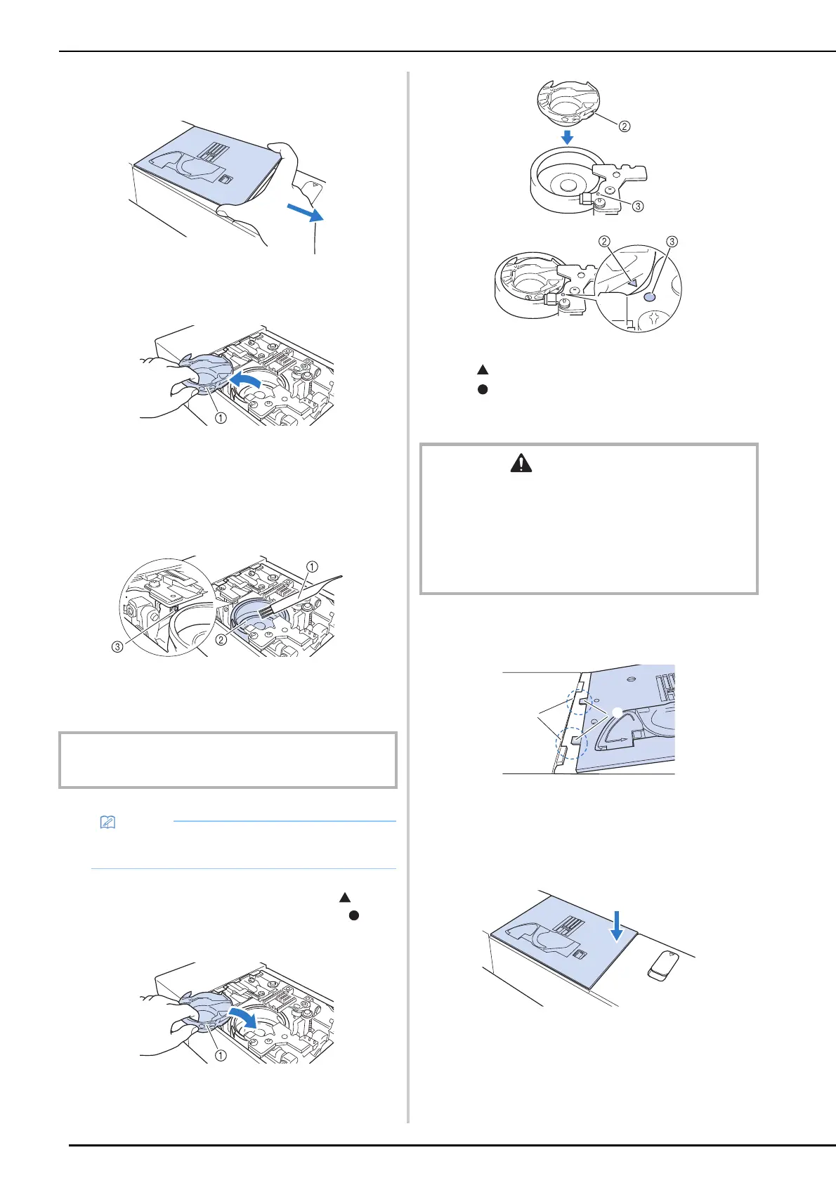 9 Insert the bobbin case so that the mark