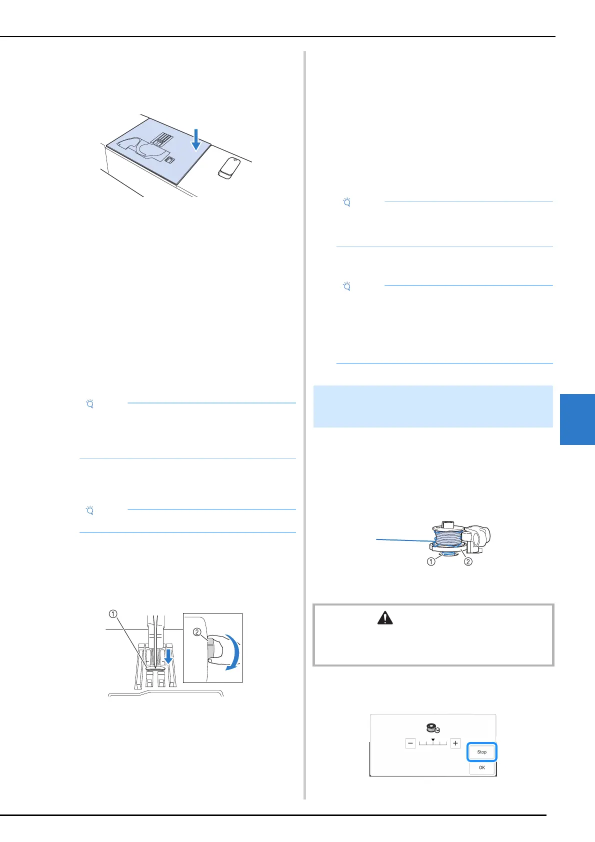 1 Touch [Stop] once to stop the bobbin