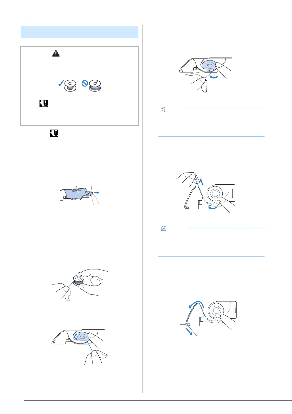 • Before inserting or changing the bobbin, be sure to