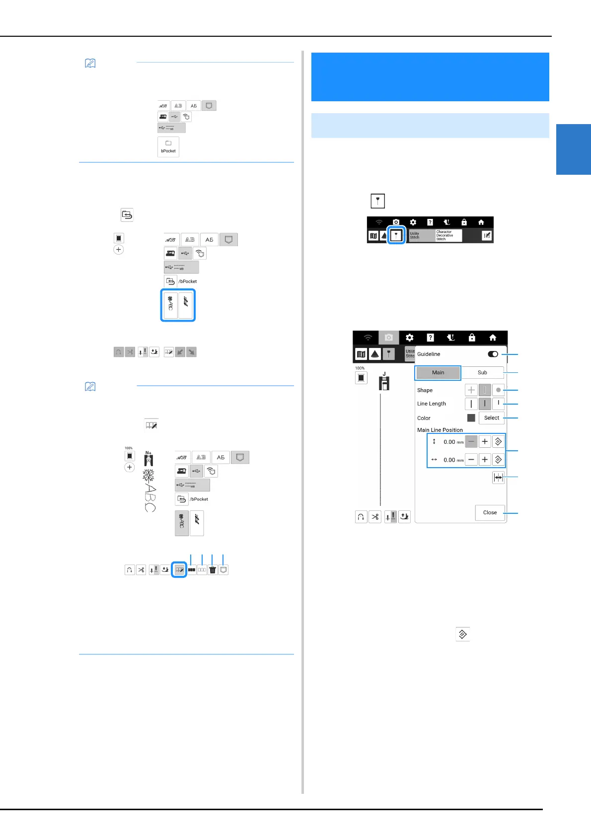With the guideline function, sewing can easily be