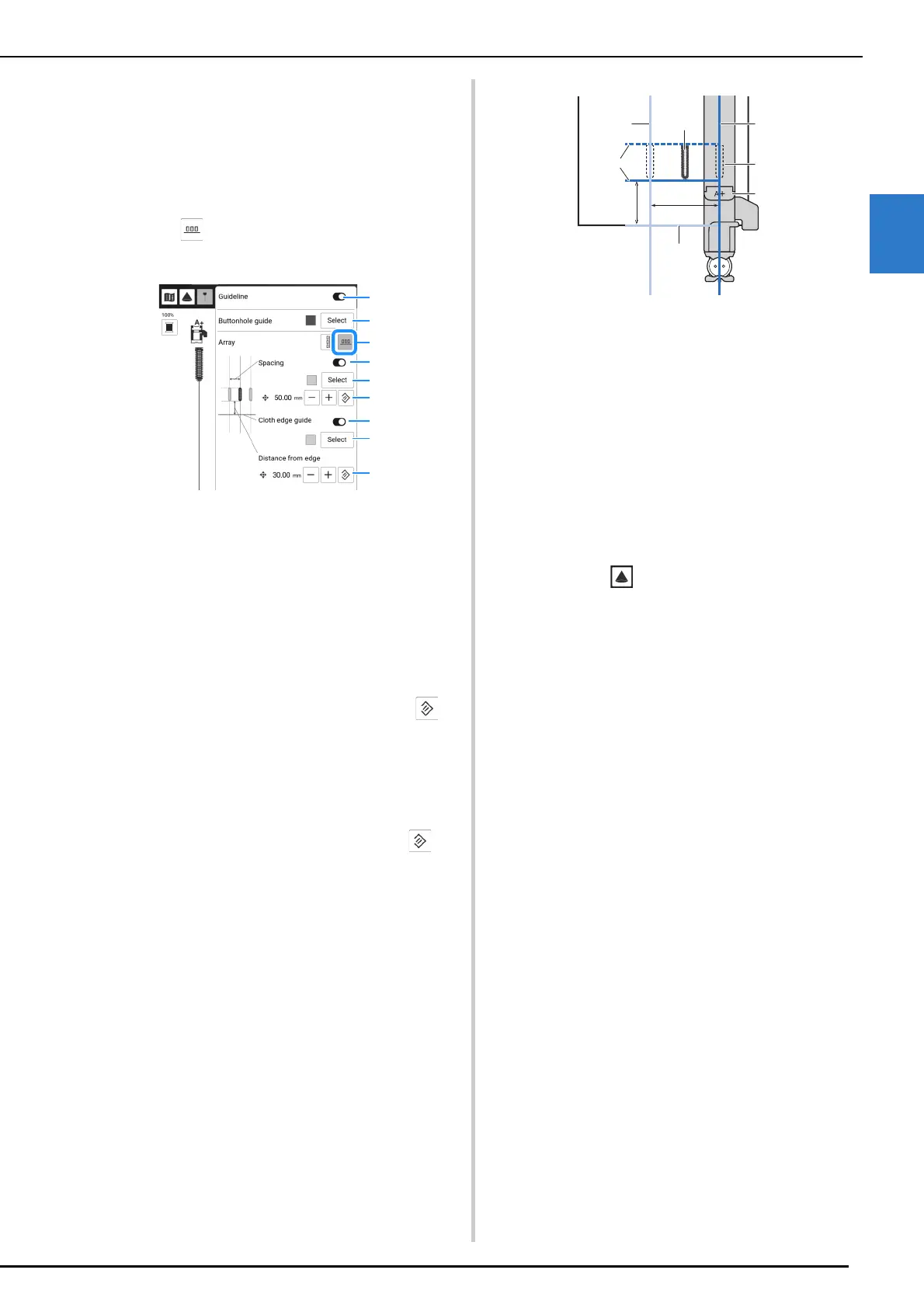 f Change the spacing of the buttonholes of the sub