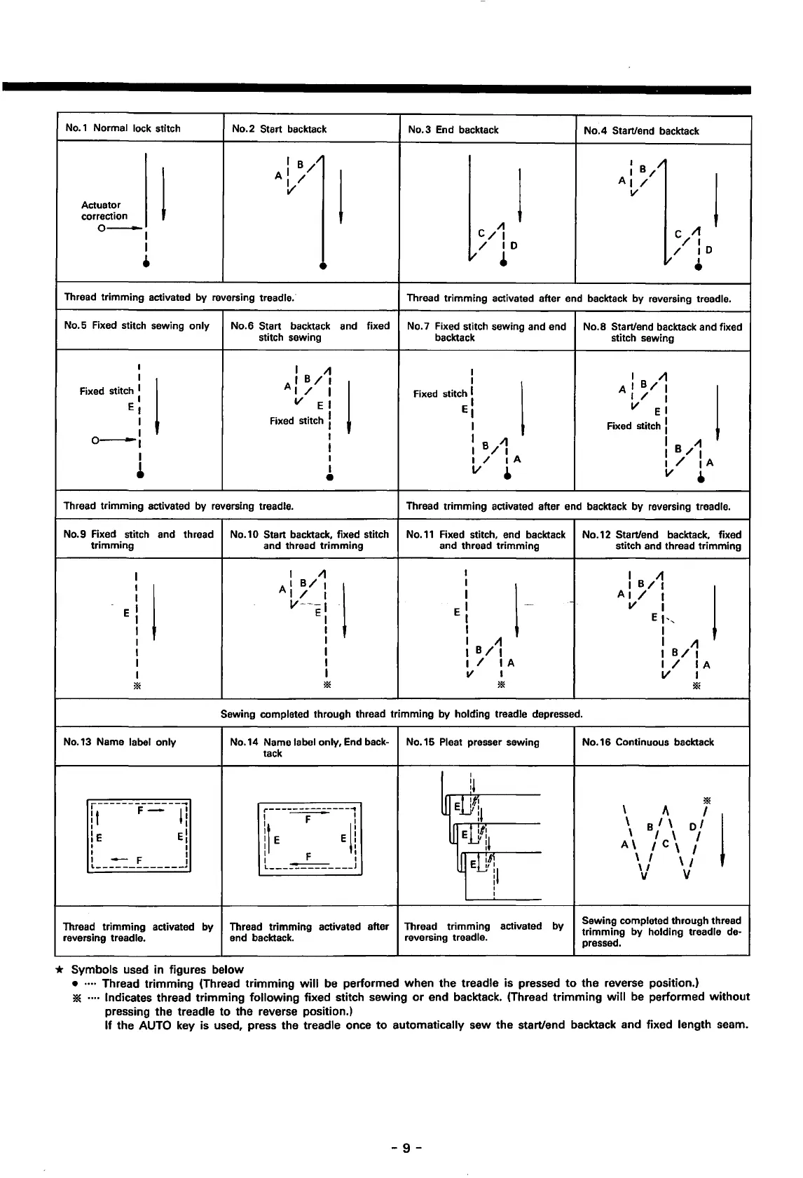0 Start backtack, fixed stitch No.11 Fixed stitch,