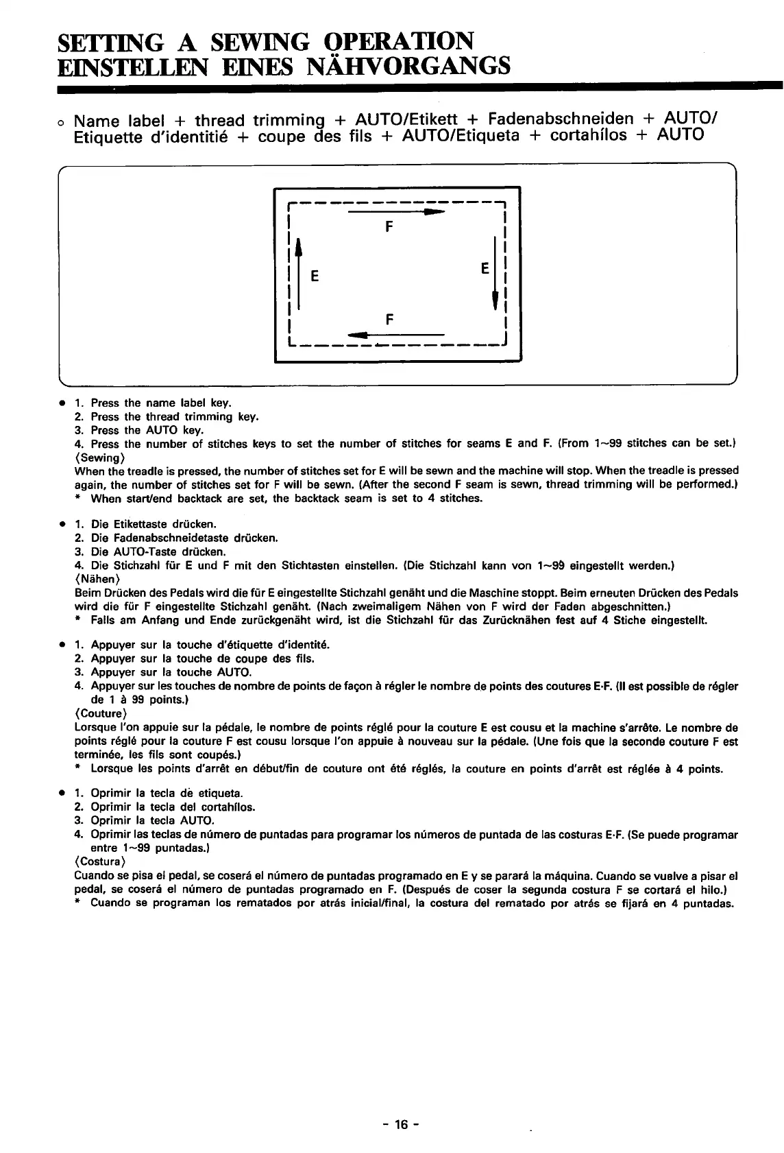E eingestellte Stichzahl geniiht und die Maschine stoppt. Beim erneuten