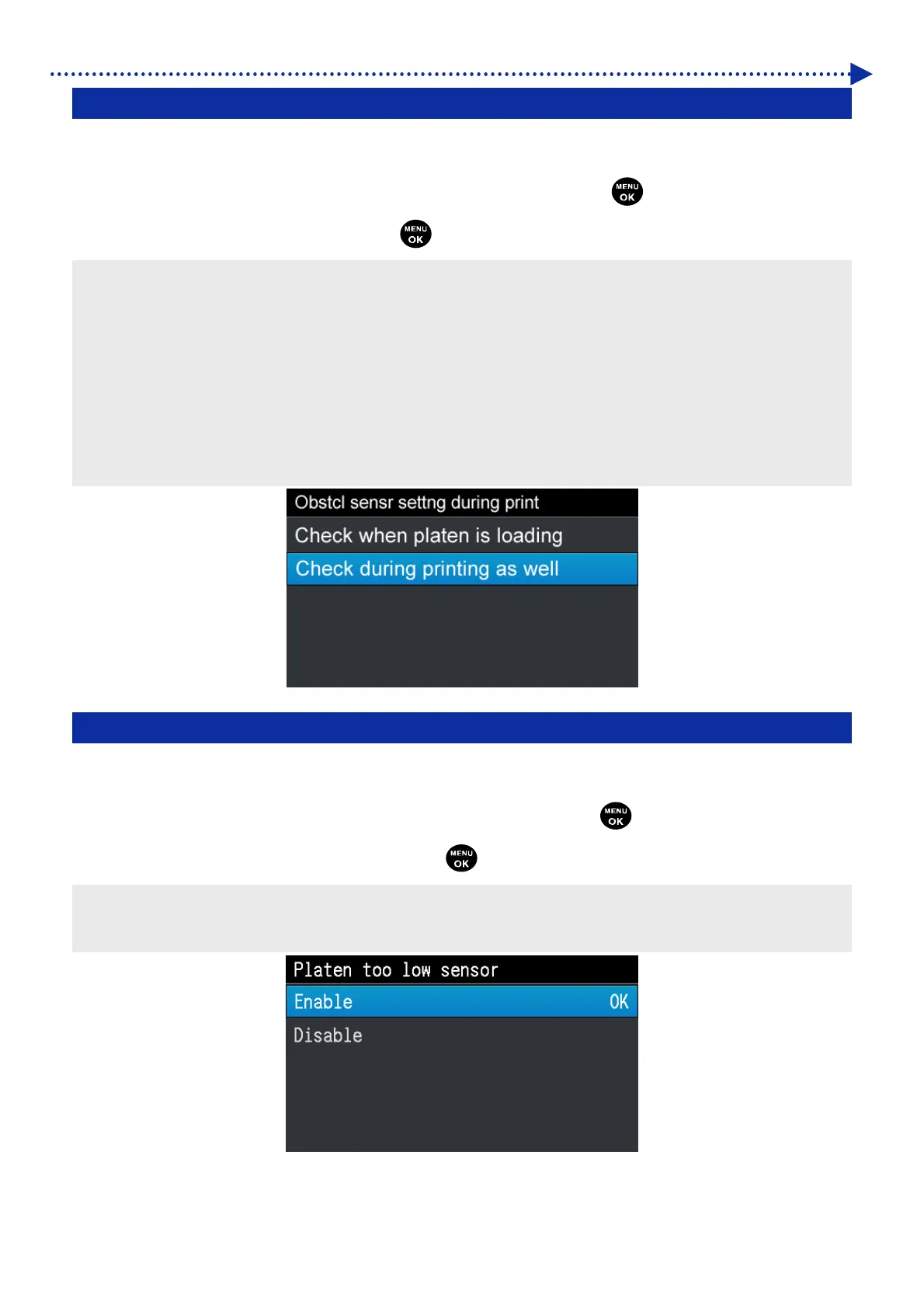From the menu, select [Printer Setting] > [Platen Obstacle sensor], and press